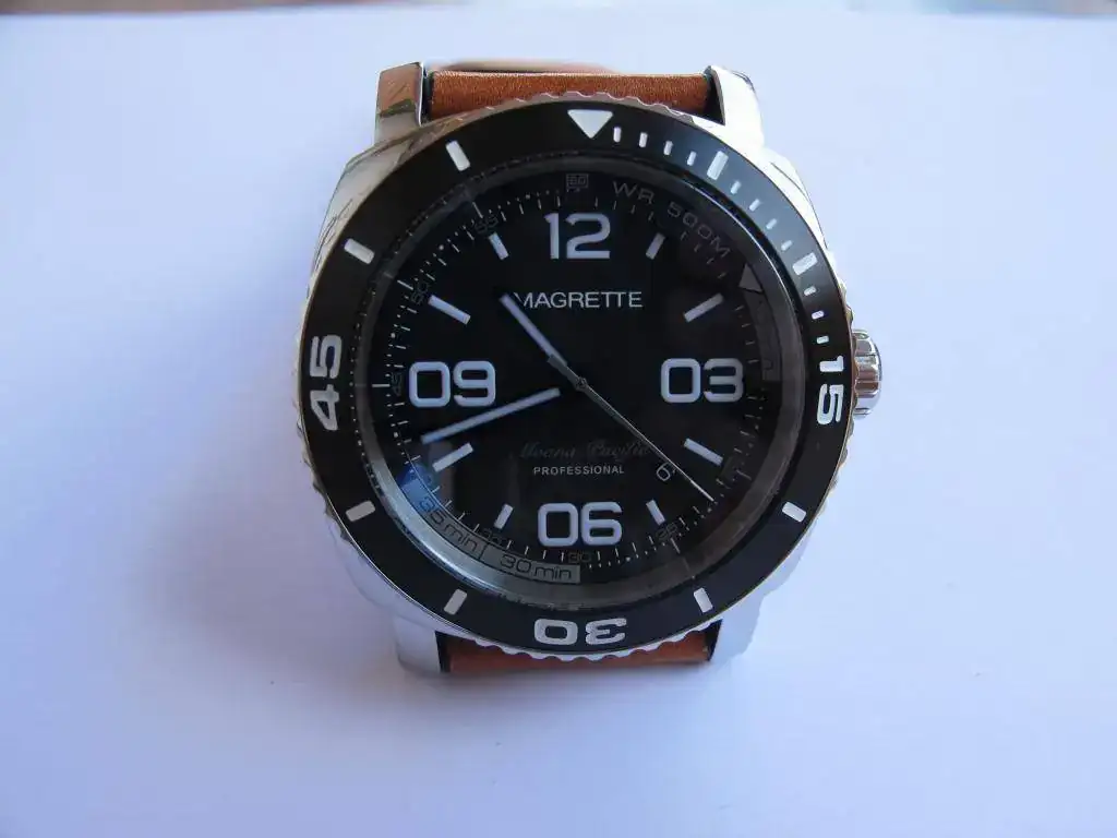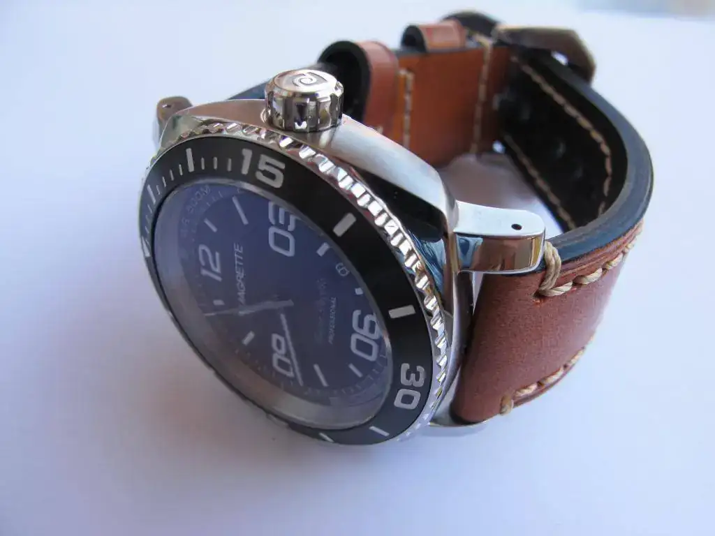 Siempre me ha gustado pero no sabía porque. Es su caja en forma de cojín que me recuerda a los Panerai, o sus numeros con un cero delante? O las dos cosas. Lo cierto es que cuando empezaron a montar calibres suizos STP y salio este modelo diver, me lancé a la compra por internet, y desde entonces pasa largas temporadas en mi muñeca. Magrette es una micromarca neozelandesa, como ya sabeis, pero que hace las cosas muy bien y el resultado es muy bueno. En este reloj valoro además la trayectoria de la marca y la fidelidad a una linea que no se ha apartado ni un ápice de la filosofia que hay detrás de los relojes que fabrica. Es un reloj que me emociona especialmente.