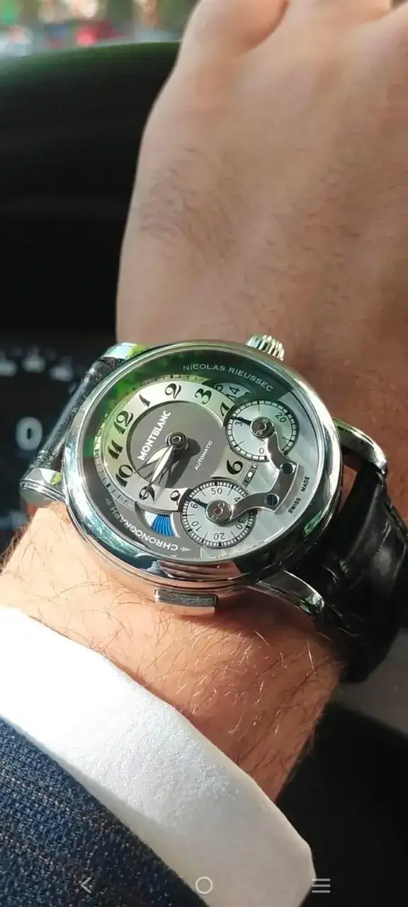 2. Montblanc Nicolas Rieussec. Mi reloj más especial. Regalo de mis padres cuando este pasado junio de 2024 cuando acabé mi carrera universitaria. Me gusta todo de él, el tamaño, las complicaciones, su diseño único, su peso... Para mi es el reloj perfecto y si en vez de poner Montblanc pusiera otra marca costaría el doble. Combino su correa original con una de piel marrón, negra y otra de manta raya.