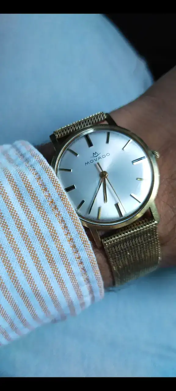 4. Movado. El tercero que más me gusta de mi colección. Nunca saldrá, me parece irremplazable. Está en un estado excepcional, la milanesa de oro sin ningún desgaste o desviación. Las agujas, el logo, la esfera, la caja, la correa... Me parece el vintage perfecto. Lo uso mucho ya que suelo vestir muy formal y me encantan los relojes de oro.