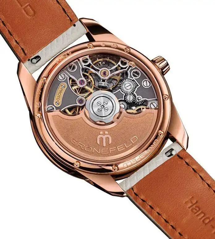 El Starry Varius está equipado con el último calibre DB2507 de cuerda manual. Visible a través del fondo de la caja de zafiro de 42 mm, el reverso del movimiento revela el último volante de titanio con contrapesos de oro blanco. Tiene la capacidad de neutralizar los efectos de las variaciones de temperatura gracias a su interacción con el muelle de equilibrio, que está acabado con una curva plana "De Bethune". También se ha trabajado en su aerodinámica para reducir al mínimo la resistencia al aire. La rueda de escape está hecha de silicio por la ligereza del material y para aumentar la potencia del calibre. En cuanto al regulador, se mantiene en su totalidad mediante un sistema de triple paracaídas que combina un puente de titanio que integra dos rubíes en su lugar mediante un sistema de ballesta que presiona los rubíes. Los dos barriletes, parcialmente visibles, proporcionan al Starry Varius GMT una reserva de marcha de cinco días gracias a un mecanismo de autorregulación de la energía.