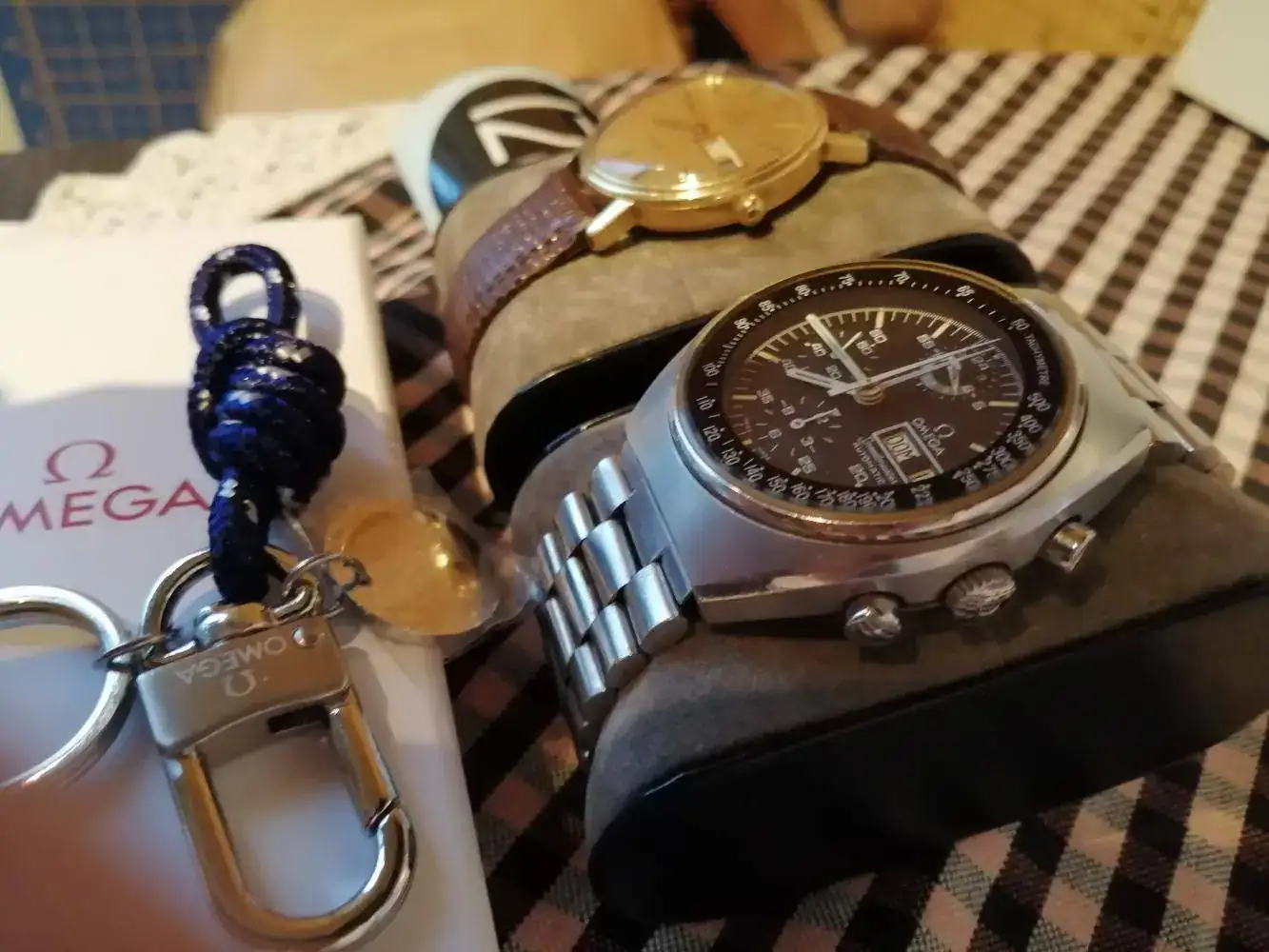 Hola a todos! Tal como dice el dicho, agradecido estoy yo por lo que me ha llegado hoy. La verdad es que no me esperaba ningún premio cuando me apunté al sorteo así que estoy super feliz. El llavero es genial, aqui luce con los dos Omega de que tengo: uno era de mi padre y otro de mi abuelo. Agradecer de nuevo al foro esta genial iniciativa y esperar que Waxell disfrute mucho de su nuevo Hamilton (esperando fotos)