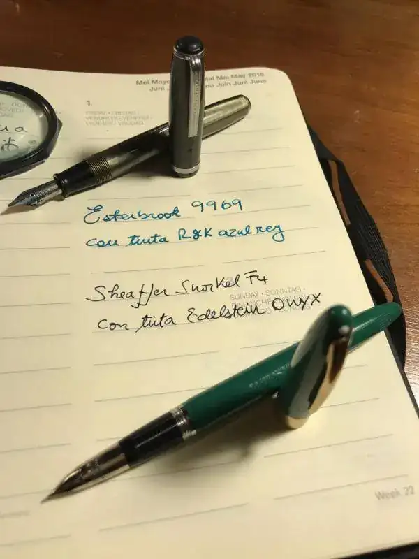 Hola, hace tiempo no escribía. Bueno, estuve unos días de vacaciones en Nueva York junto a mi padre, y aproveché de recorrer mercadillos (cosa que siempre trato de hacer cuando voy a otra ciudad), Si bien en este foro había leído que no habían "gangas" en NYC, y que es la tercera vez que voy, (por lo que tengo claro que es una ciudad carísima) Reconozco que quedé encantado con mi "cacería" en el mercadito de Green Flea market, ubicado cerca del museo de historia natural, y que abre los domingos. Es un mercado muy pequeño y con pocas antiguedades, mas bien cachureos, pero encontré una esterbrook 9969 y una sheaffer snorkel F4, ambas funcionando y por 25 dólares (lo que al menos para Chile es un precio muy económico, teniendo en cuenta de que aquí cuesta encontrar estilográficas antiguas en buen estado). Sin aburrir mas a los lectores, subo una foto con ambas.
