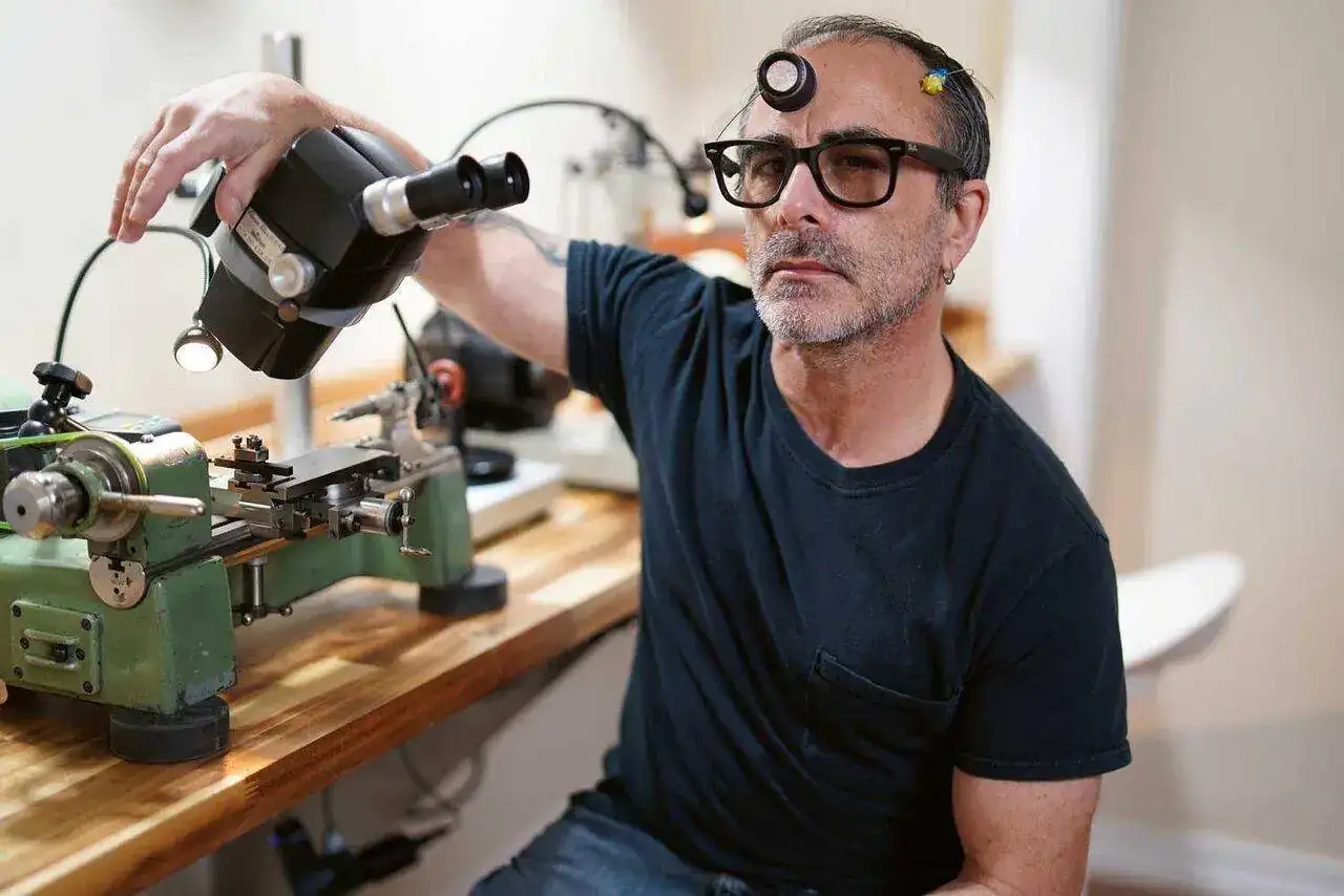 "Soy un solucionador de problemas en lo que respecta a las cosas mecánicas y electrónicas... un solucionador de problemas autodidacta. Esta faceta tiene un gran papel en la relojería. Cuando llegué a la escuela Bulova para realizar todo el ciclo de 4 años, esa experiencia en la resolución de problemas me fue muy útil. Poco después de Bulova, recibí un aviso de WOSTEP cuando el único lugar para realizar el curso era en Neuchâtel, y gané una beca para ir allí y continuar mi enfoque en las complicaciones. En Bulova, mis objetivos eran dominar relojes muy complicados, incluidos cronógrafos combinados con otras complicaciones. Antes de acudir a la escuela ya conocía todos los calibres de relojes antiguos. WOSTEP demostró ser una de las experiencias más increíbles de mi vida. La escuela está abierta las 24 horas del día para ti. El proceso de aprendizaje allí es único, básicamente depende de ti ponerte al día con el mejor estudiante de la clase. Otros estudiantes estaban trabajando en espirales durante toda su vida y si estás aprendiendo a hacer espirales Breguet por primera vez, te van a dejar en ridículo. Tienes que intentar ponerte al día. Mi profesor fue Antoine Simonin, uno de los fundadores del curso WOSTEP. Más tarde fui nombrado instructor a cargo de todos los relojeros mecánicos y electrónicos de la compañía suiza Chopard en América del Norte y del Sur. Y después fui el instructor de relojería de la marca Leviev, también para América del Norte."