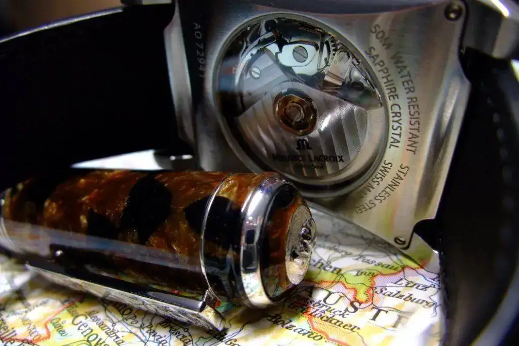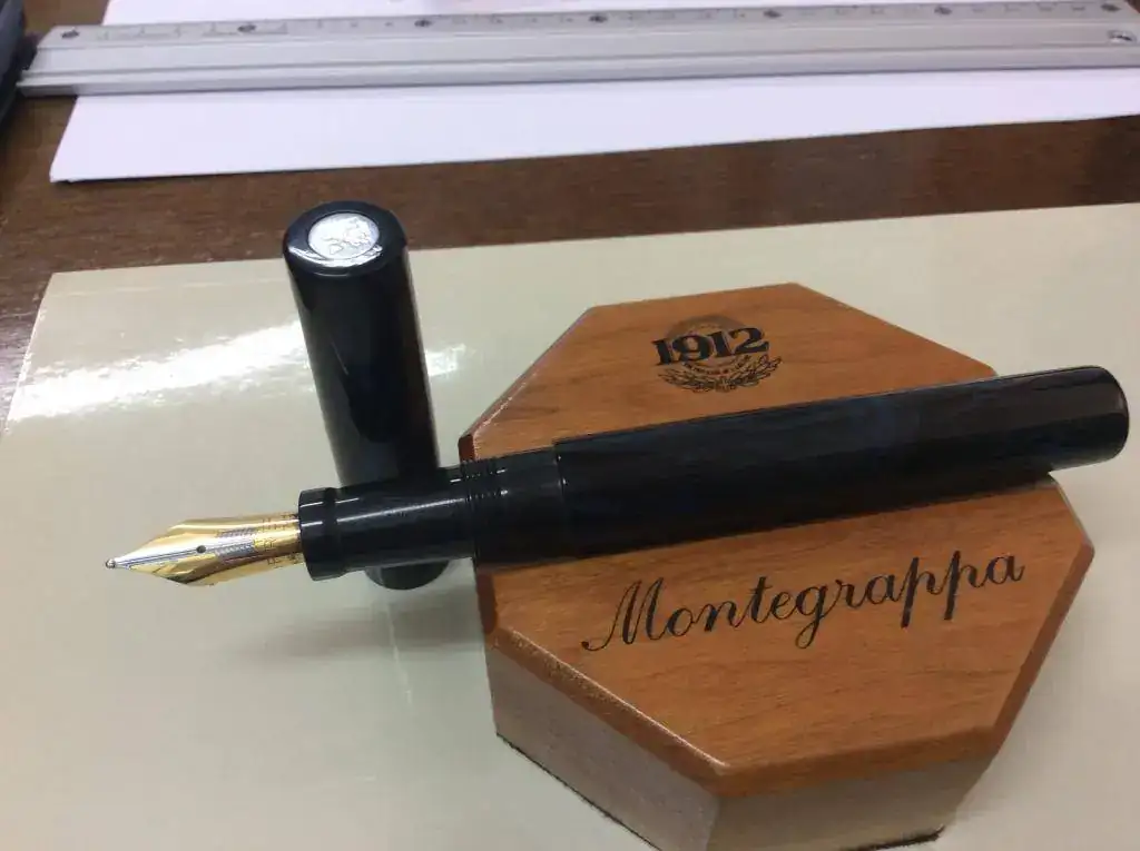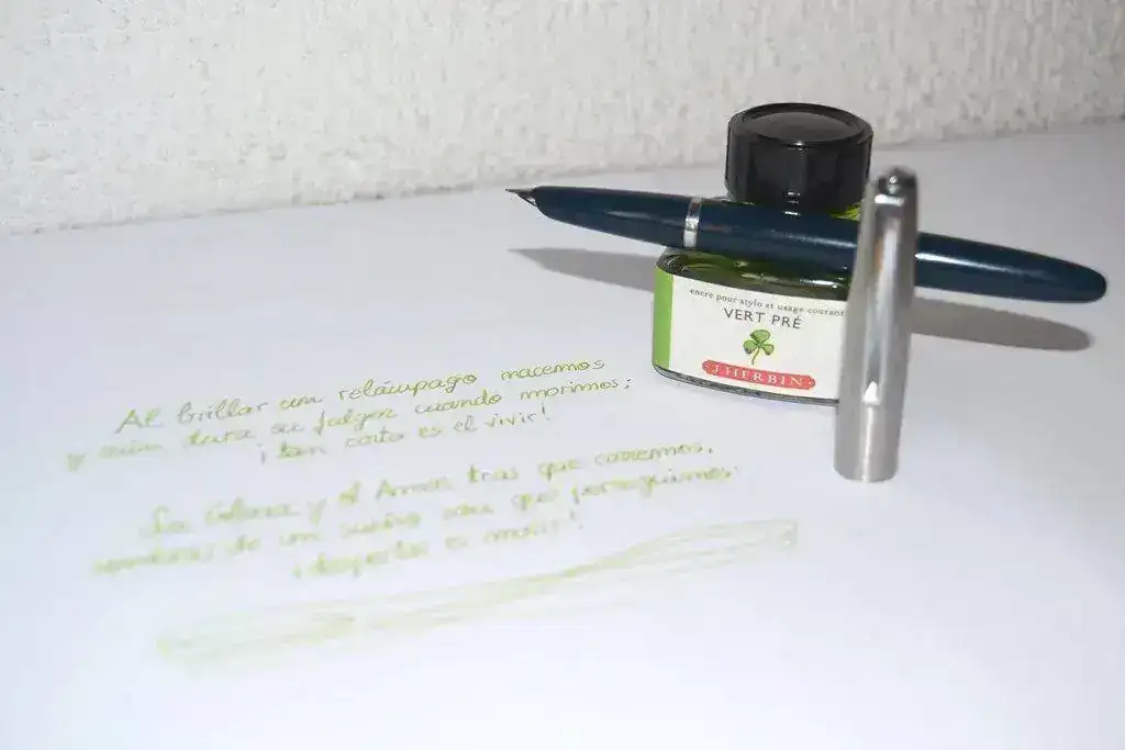 Una vez cargada comencé a escribir con ella, una auténtica delicia. La verdad es que se hace raro pensar que es una estilográfica de unos 70 años, es un poco raro cuando te paras a pensar todo lo que habrá pasado, quien habrá escrito con ella, todo lo que habrá vivido. La pluma presenta los rayones y las marcas propias de una pluma que se ha usado, pero está bien conservada, el grabado se lee a la perfección, ha perdido parte del chapado del extremo del clip y se han borrado un poco las líneas de la parte metálica. Pero esas cosas fuera de restarle valor la dan autenticidad, una pluma que ha vivido lo impensable para llegar a mis manos.