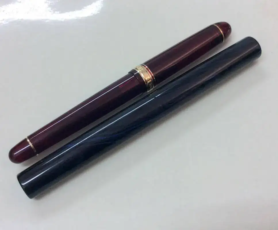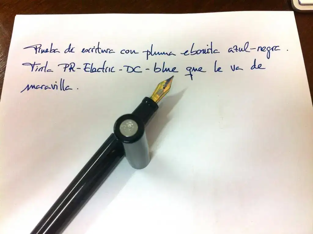Más tarde nos despedimos y me fui corriendo a casa para probarla. Al llegar comenzó la difícil decisión de elegir la tinta. Tras un rato pensando elegí la tinta que lleva ahora, una de las favoritas de mi pareja: La que hasta hace 2 minutos pensaba que era Sailor Peche (así figura en la muestra de escritura, no tengo tiempo para andar pidiendo otra vez la cámara y hacer las fotos