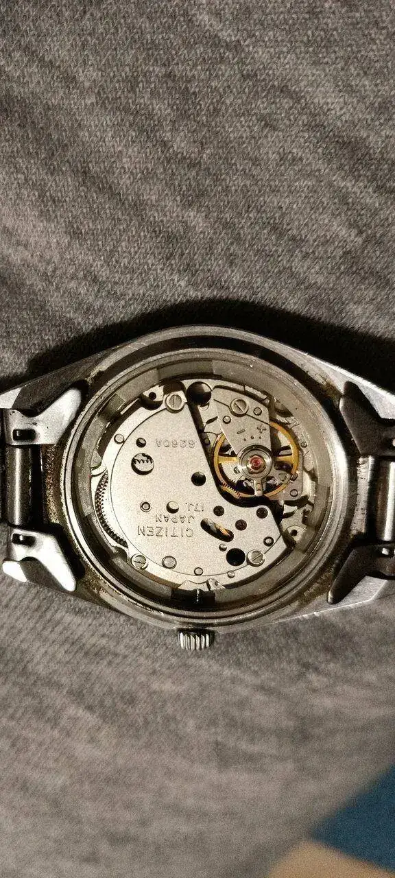 Como ya imaginaréis abrí con cuidado las tapas de los relojes. En esta tesitura, cuando vi la maquinaria del Citizen, como la bata del reloj holgaba con respecto de la caja, la impaciencia y la tentación me llevaron a soltar la tija para sacar el movimiento y el dial. Como os digo, solo por mera curiosidad, pues nada iba a hacer que justificara tal acción.