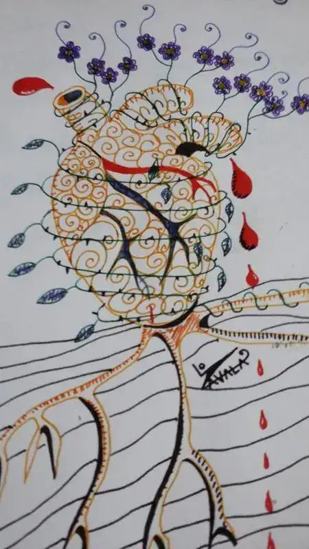 Y por si hubiera dudas al respecto, un dibujito suyo que incluye tintas Diamine Syrah y Pumpkin, Waterman verde, violeta y roja, Delta negra y Pelikan 4001 azul, cargadas en una Twsbi Eco all Clear, Cross Townsend USA, Baoer, Bokworm y Lamy como prueba evidente de que su descenso a los infiernos del sótano es definitivo.