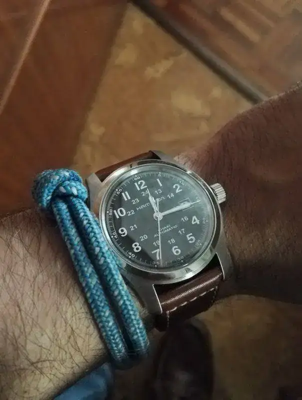Lo acompaño, de un Oris, un despertador, que de sorpresa llegó ayer a casa y aunque va estupendo, lo tuve que guardar en el cajón de la mesilla -el tic tac, en el silencio de la noche molestaba a mi mujer-, así que pasará en su cajita gran parte del tiempo hasta que le encuentre una ubicación mejor…, ya veremos. (no sé de qué década será, parece de los 60/70)