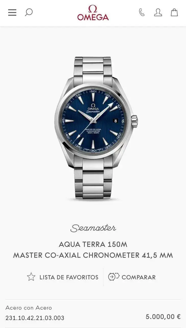 Tienes razón, no se donde vi el precio, lo busqué en internet según tarifa de 2019 y me lanzo ese resultadoA ver, no creo. Actualmente, con subidas y pasados años, un Aquaterra automático, con su escape coaxial, tiene un pvp de 5.000€.