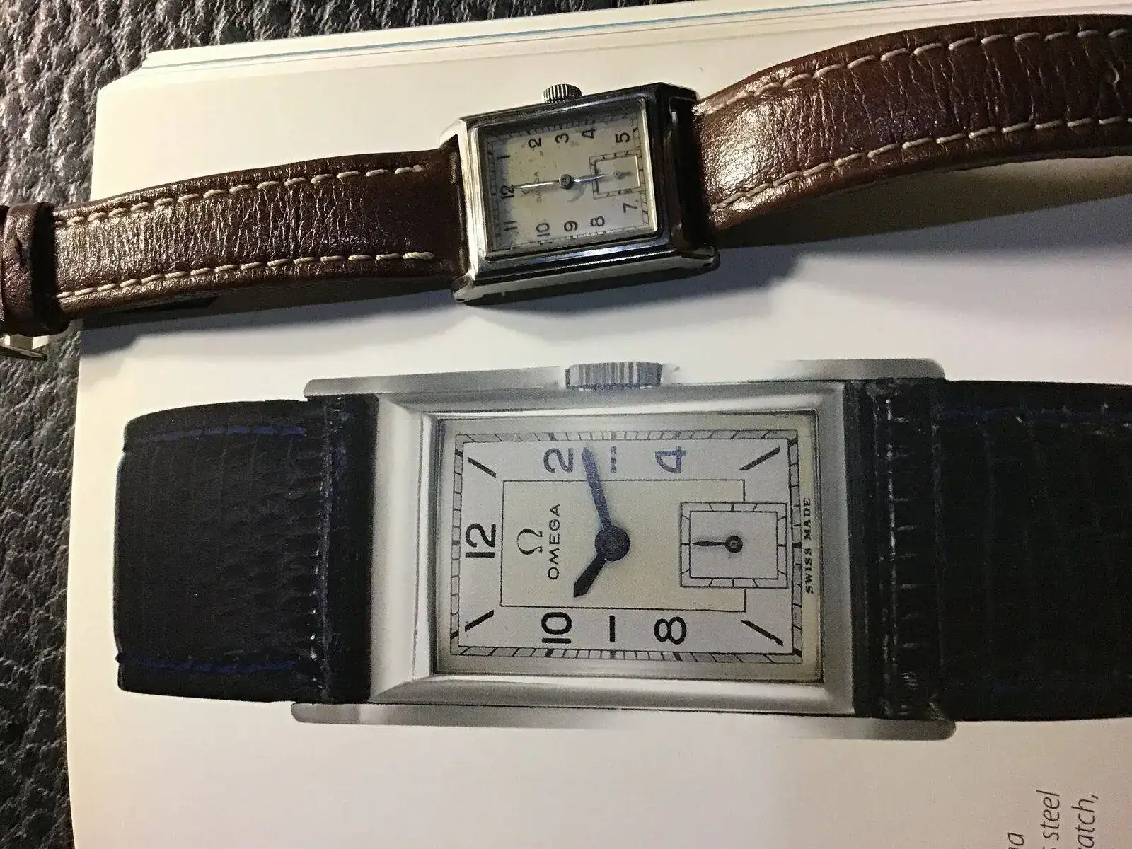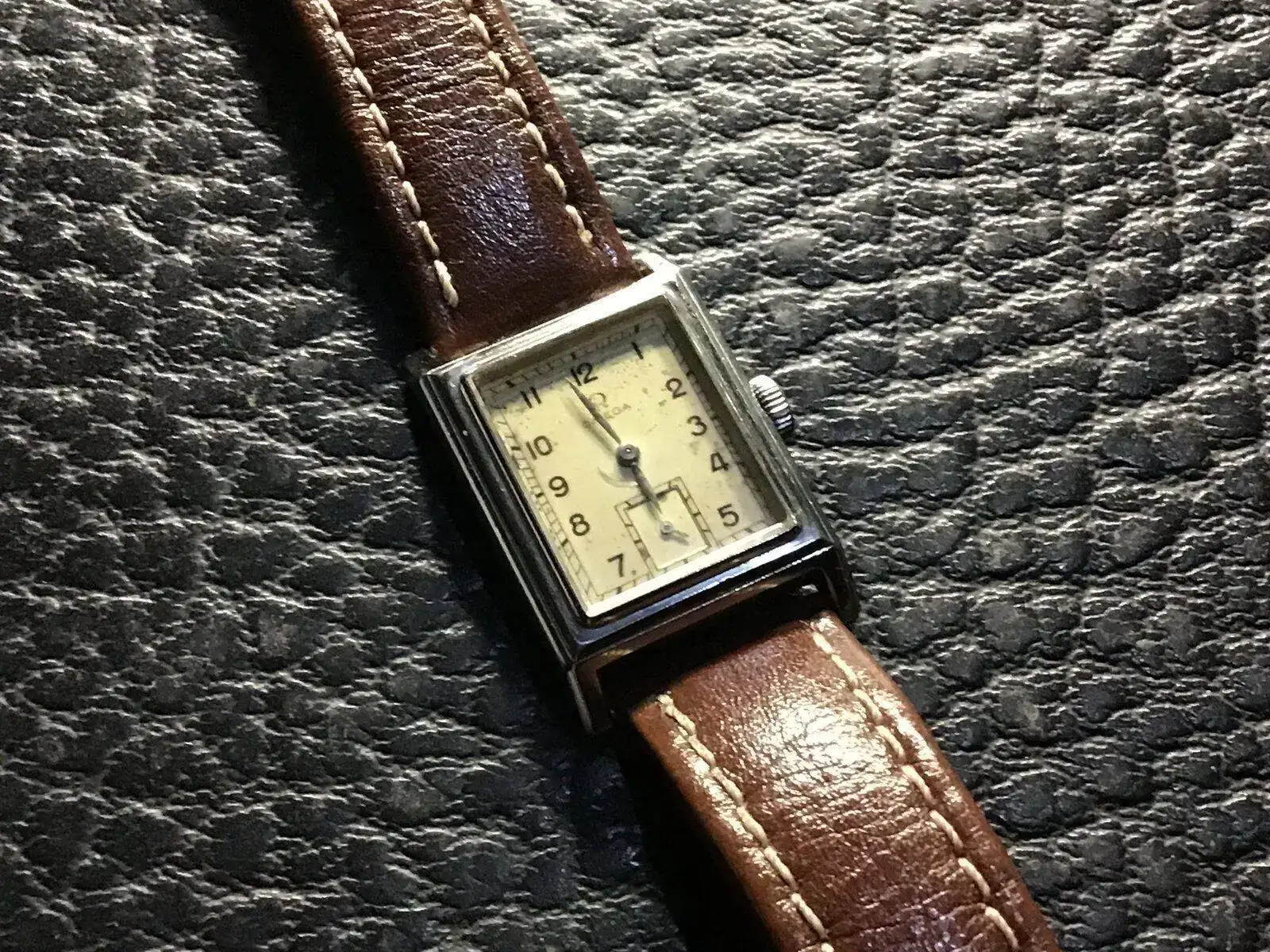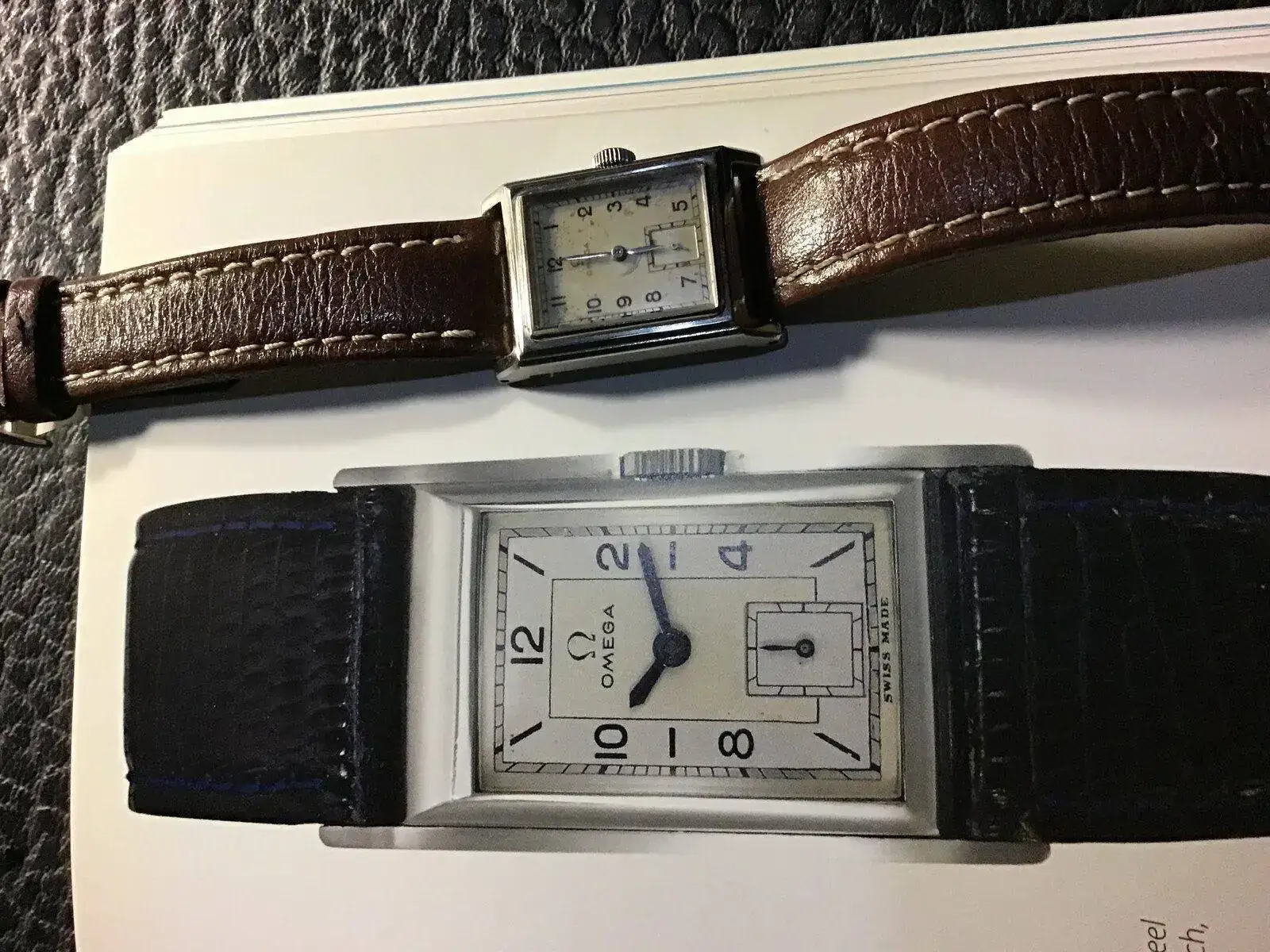 Hablo de mi omega art deco, en algunos sitios lo vi como "tank". Un omega con caja de metal, chapada, de origen suiza, lleva el logo redondito, no el triagular, ninguna informacion encontre acerca de cuando cambian el sello omega en sus cajas del redondo al triangular, imagino q en la decada de los 50, pero eso solo es deduccion mia.