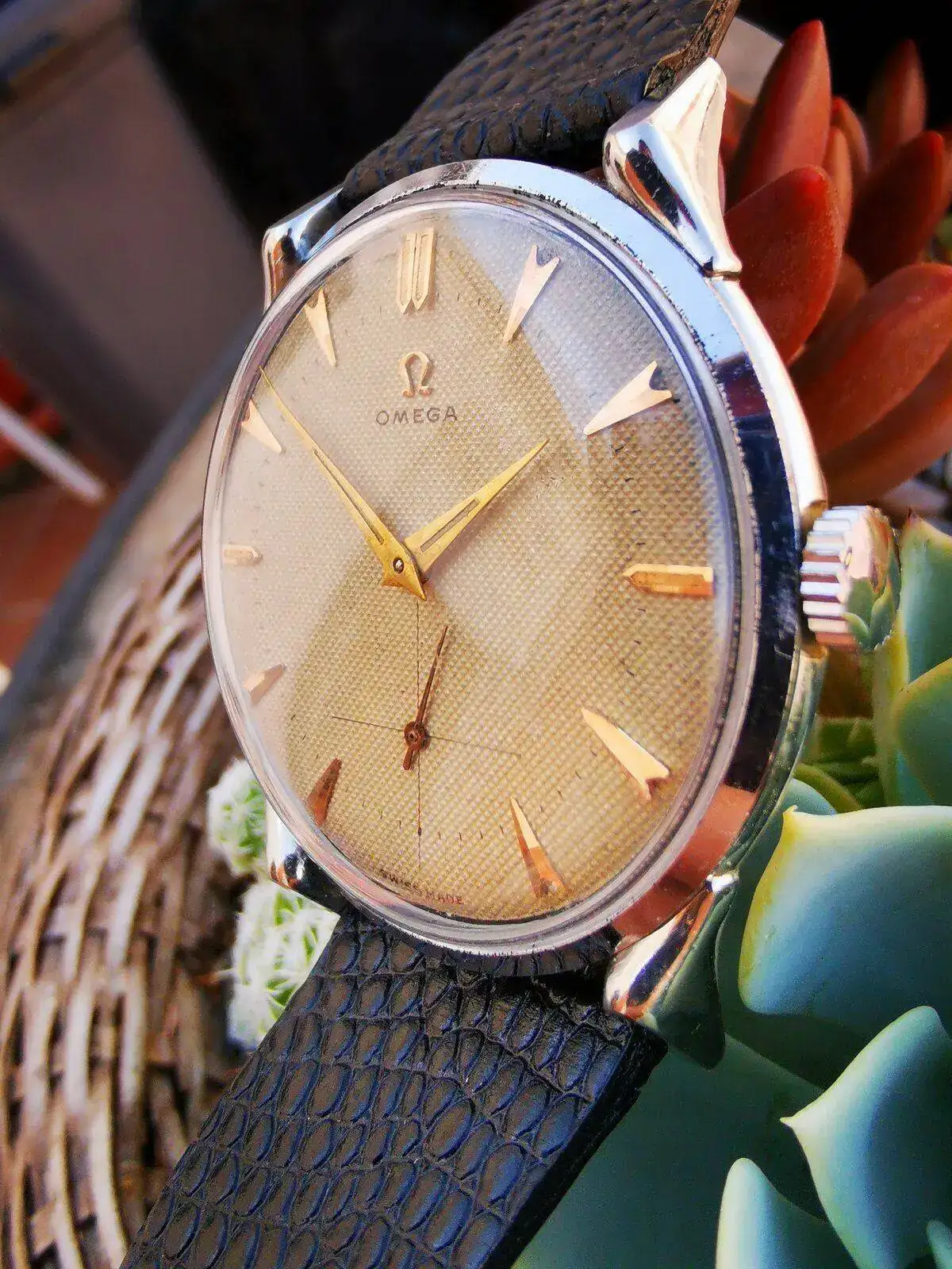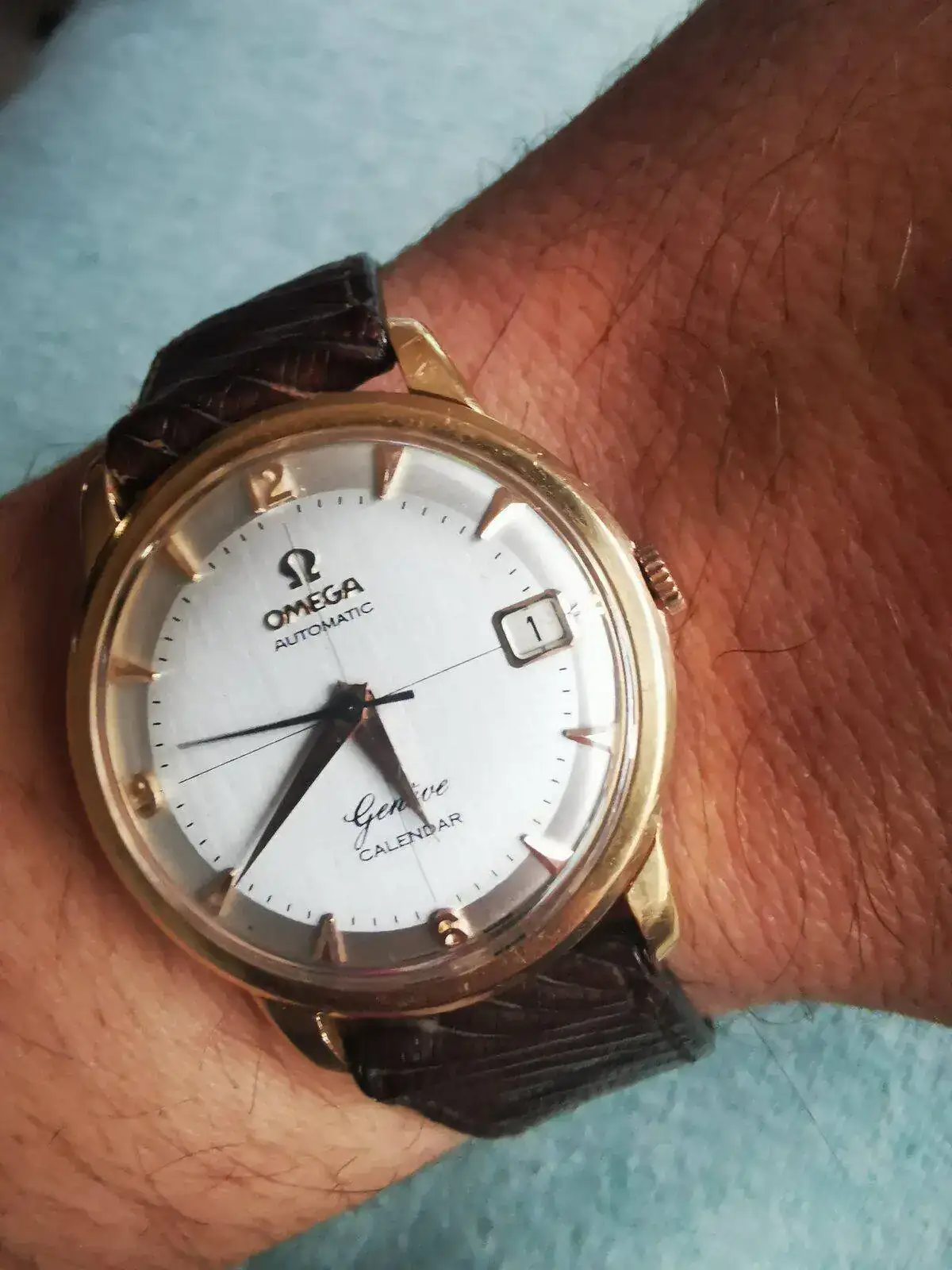 1. Omega esfera de porcelana y agujas breguet.