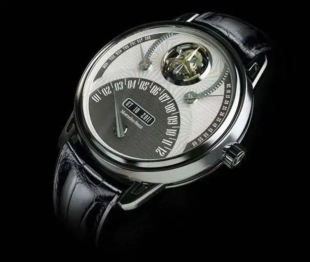 Mercedes 320 reloj tourbillon era el diseño como homenaje a Mercedes-Benz Tipo 320, en primer lugar, introducido a mediados de 1937. Este coche fue especial, ya que se le dio una suspensión delantera independiente y trasera, con resortes helicoidales en las cuatro esquinas. Esto dio el coche impresionante comportamiento en carretera, manteniendo los pasajeros cómodo.