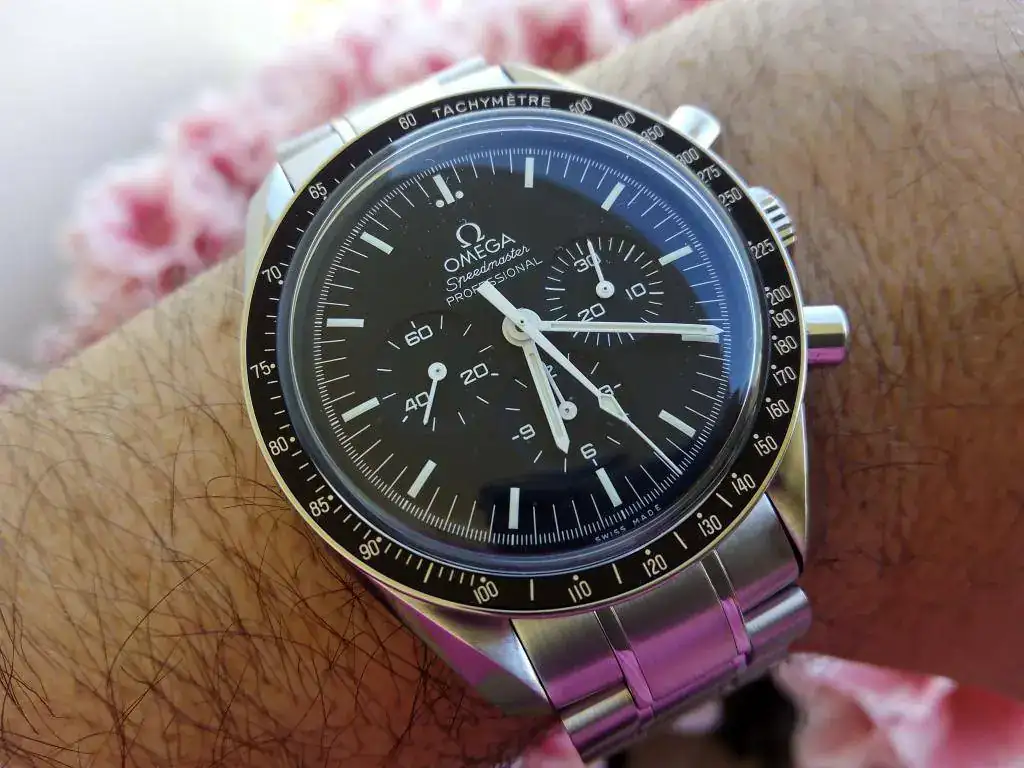 Mira, yo busqué mucho tiempo el Speedmaster professional, finalmente me decidí por el doble zafiro, soy romántico pero no tanto y ver la máquina y poder sacarlo a la calle sin llevarlo entre algodones me convenció. Lo había visto en escaparates y ya sabía que tiene una esfera un tanto mate, que es una reproducción muy fiel de lo que los desesperados tripulantes del Apolo XIII usaron para volver a casa, y que debía ser una linterna mágica en la escasa iluminación de la cabina de su módulo lunar cuando salieron de la órbita de la luna para catapultarse hacia la Tierra, con esa belleza que tiene un chaleco salvavidas cuando te estas ahogando por ejemplo.