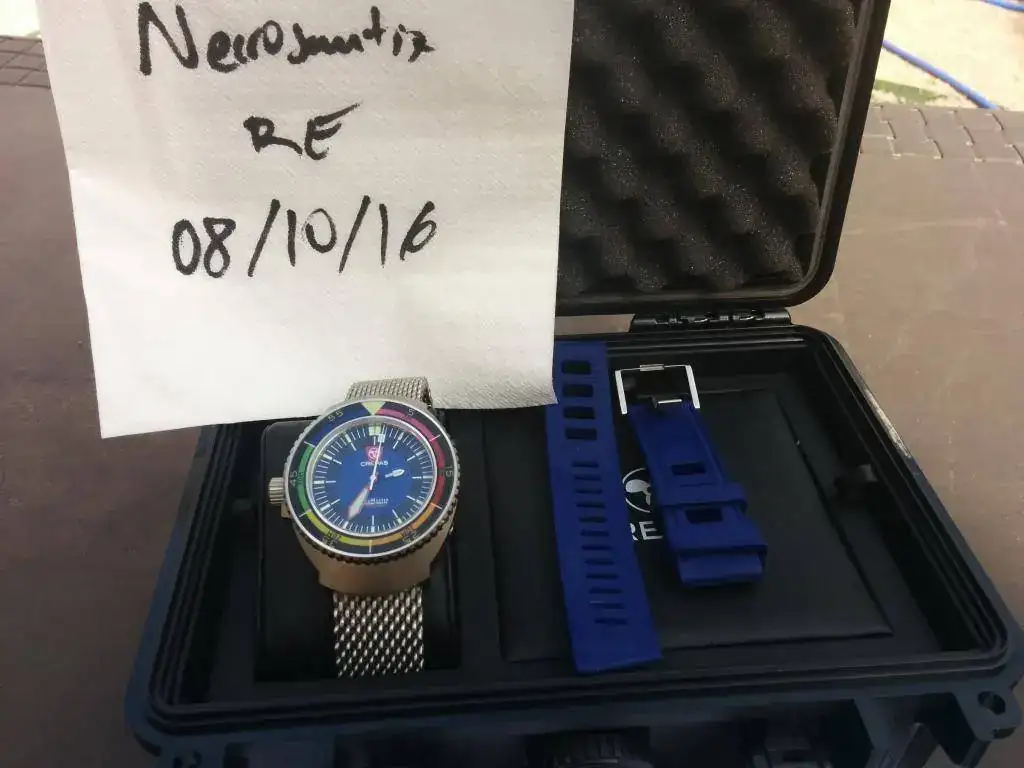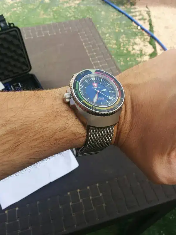 En esta ocasión saco a la venta esta exclusiva pieza de crepas. Os dejo el enlace con las características https://www.crepaswatches.com/. Recibida ayer día 07/10/16 de un compañero del foro, no tiene ni una sola puesta, no se ha usado nunca, la he sacado de la caja para probármela y cambiarle el caucho por la milanesa. Se entrega con toda la dotación de origen, nato de dos piezas, caucho,bisel profundímetro, pieza de cambio de bisel, otra para cambio de correa y documentación. Parafraseando al compañero que me la vendió "el reloj está NUEVO" El reloj esta impoluto, de reestreno total, tan solo presenta algún pelillo en las asas fruto del cambio de correa (hoy le he cambiado el caucho por la milanesa para ver cómo quedaba). Lo vendo porque sufrí una CRI y, tras recibirlo me he dado cuenta de que el reloj no es para mí. Si quires un diver con todas las letras, contundente, en parámetros COSC y de gran calidad, no lo dudes, esta es tu pieza.