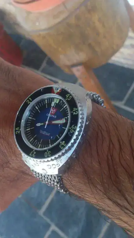 PROS: El reloj en si es impresionante. Con unos acabados muy buenos. Me encanta el tratamiento radiado a la caja, aunque adolece de algo mas de terminación bajo las asas (en el cajeado para las correas) donde se nota que ha quedado bastante bruto y se ven marcas. Los colores del lumen en indices, bisel y agujas ha quedado bastante igualado y su dial en dos capas le da un toque fantástico. El lumen en si ha mejorado respecto a anteriores modelos de CREPAS como el Lócean (donde es bajisimo), el Banana o el Scuba, aunque sigue siendo de poca duración y no llega a los que nos acostumbraron anteriores modelos como el Tektike, Buzo o el Cayman.