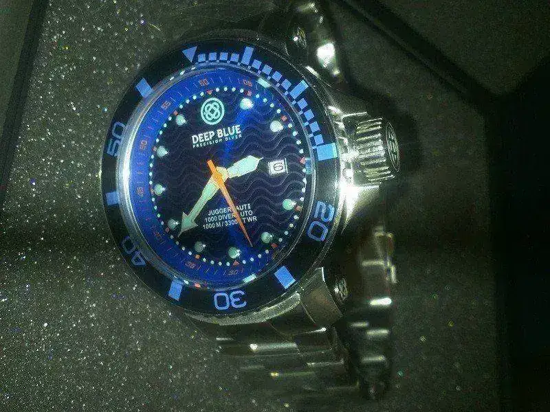 Vendo este reloj comprado el 29-julio-2013 en otro ataque de CRI (compra relojera impulsiva) y que está por lo tanto al 99,999 reestreno absoluto; o sea: nuevo. El reloj no tiene ni una sola puesta, aún conserva los plásticos del armis con todos sus eslabones de fábrica y viene presentado en caja tipo Pelikán acolchada. Es destacable la contundencia de esta bestia abisal 1000m y hay que ser "muy hombres" para llevarlo en la muñeca, con un peso entorno a los 270 gramos, debido a su poderío y excelente construcción que ya quisieran para sí otras firmas relojeras que duplican o triplican el precio por eso de cógete fama y échate a dormir. Su movimiento automático Miyota 9015 de 24 rubíes supera al Seiko Sumo, dicho por los entendidos. El color del dial es espectacular: un azul perlado en olas que cambia de color según la posición en que se mire la esfera, pasando de un azul eléctrico a un azul marino vistoso. Esta pieza hace el número 14 de una serie limitada a 5000 unidades (actualmente todas agotadas desde la página Deep Blue España Watches) Vedlos aquí, enlace:
