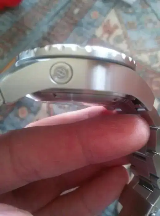guapísimo. Correa de acero maciza, muy lograda y con extensión para buceo. Corona roscada. Válvula de helio a las 10.