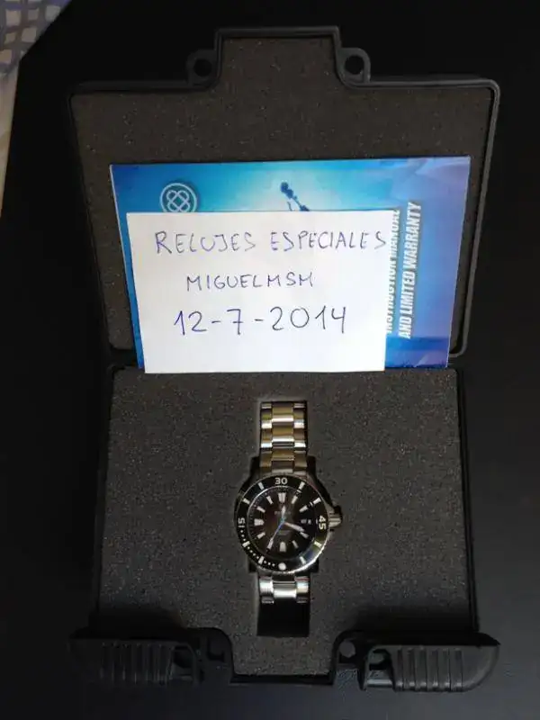 Saco a la venta este impresionante diver, con una relacion calidad precio inmejorable. El reloj esta de reestreno, yo no le veo ninguna marca, pero puede que tenga algun pelillo, por eso le pongo un 9/10, por supuesto el cristal de zafiro esta impecable. Se entrega con toda su dotación caja, papeles y eslabones sobrantes.