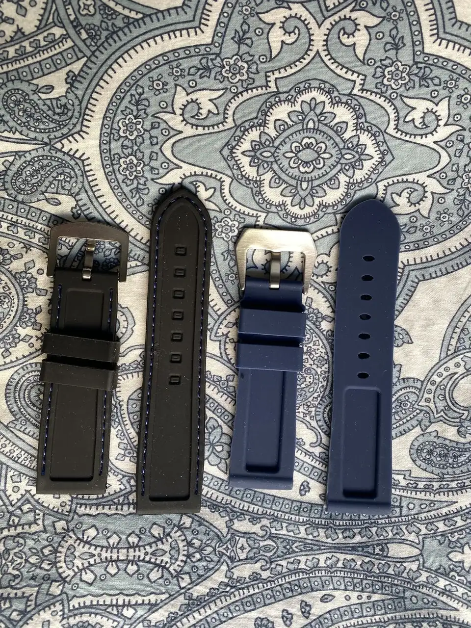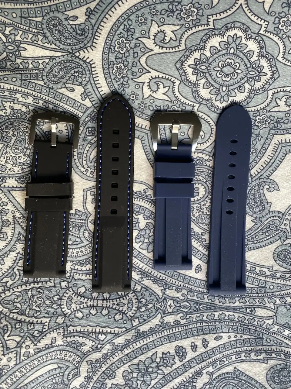 Brazalete: Armis macizo de 24mm con extensión para buceo, Caucho azul y Caucho negro pespunte azul.