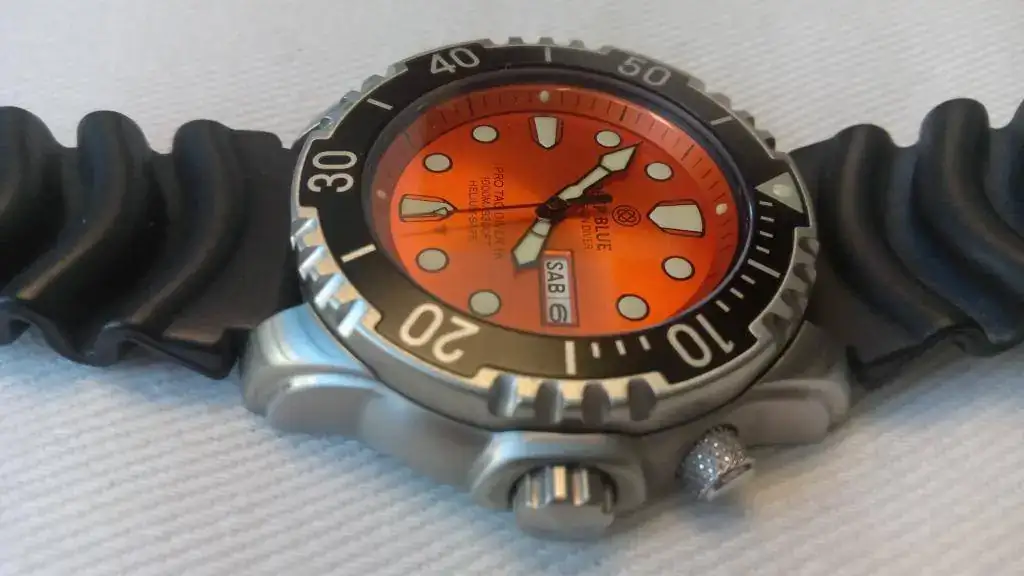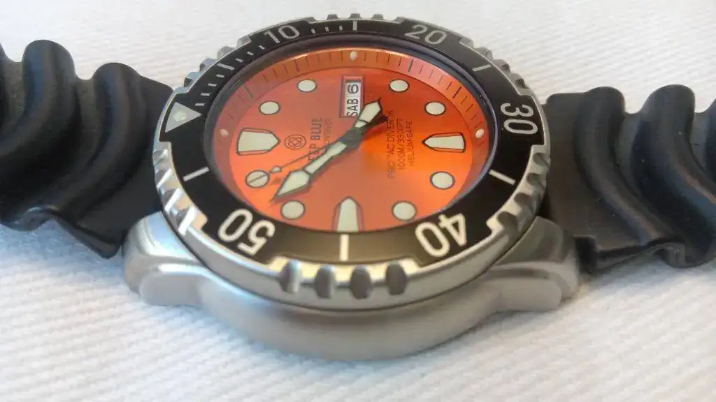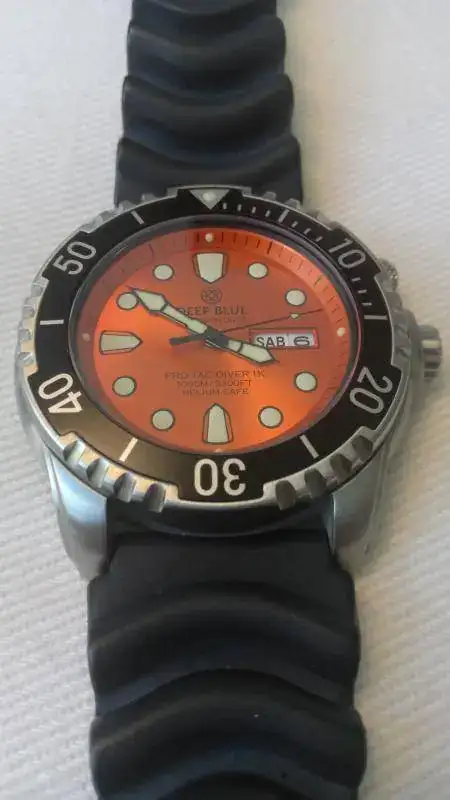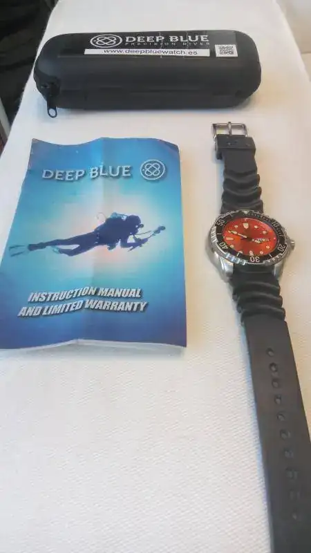 Vendo reloj Deep Blue Pro Tac Diver 1000 m, con esfera naranja con reflejos, muy bonita, y correa original de caucho negro. Un diver tremendamente robusto y vistoso, ideal para el buen tiempo y para zambullirse sin remilgos.