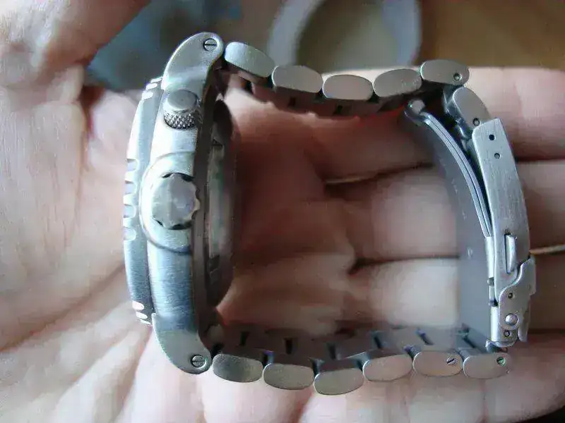 [font="]el reloj lo he usado pero se encuentra en muy buen estado aunque presenta una ligerisima marca inapreciable en el borde inferior de la caja en el lateral izquierdo (ver cuarta fotografia) y tambien unas ligerisimas marcas en el bisel que en la foto se obserban bien pero puesto el reloj no resaltan tanto y que todabia no se como me hice (ver segunda fotografia). Por lo demas se encuentra en perfecto estado.[/font]