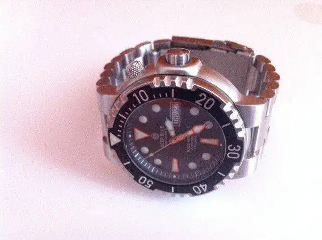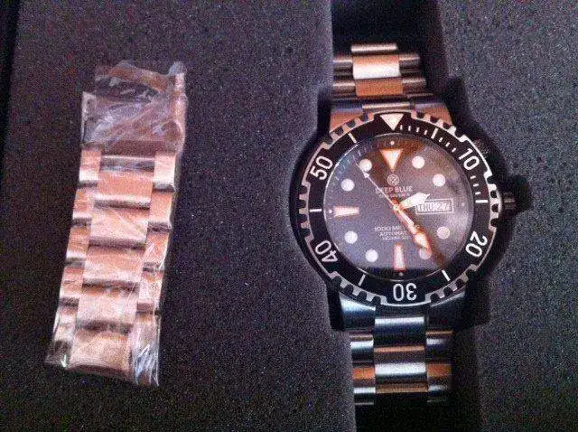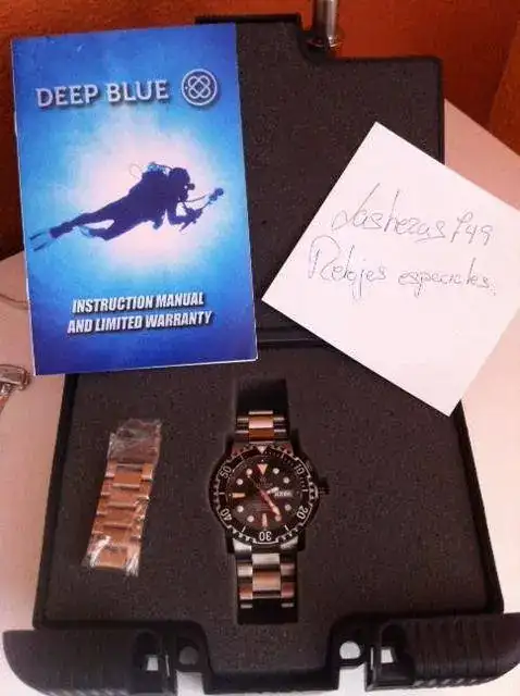 Saco a la venta un Deep Blue Sun Diver II 1000m con dial negro, movimiento automático Seiko, cristal de zafiro, válvula de helio y brazalete de acero. El reloj es de Diciembre de 2012, y con sólamente cuatro o seis puestas. Es un reloj contundente por su caja de 46mm y sus 220gr.