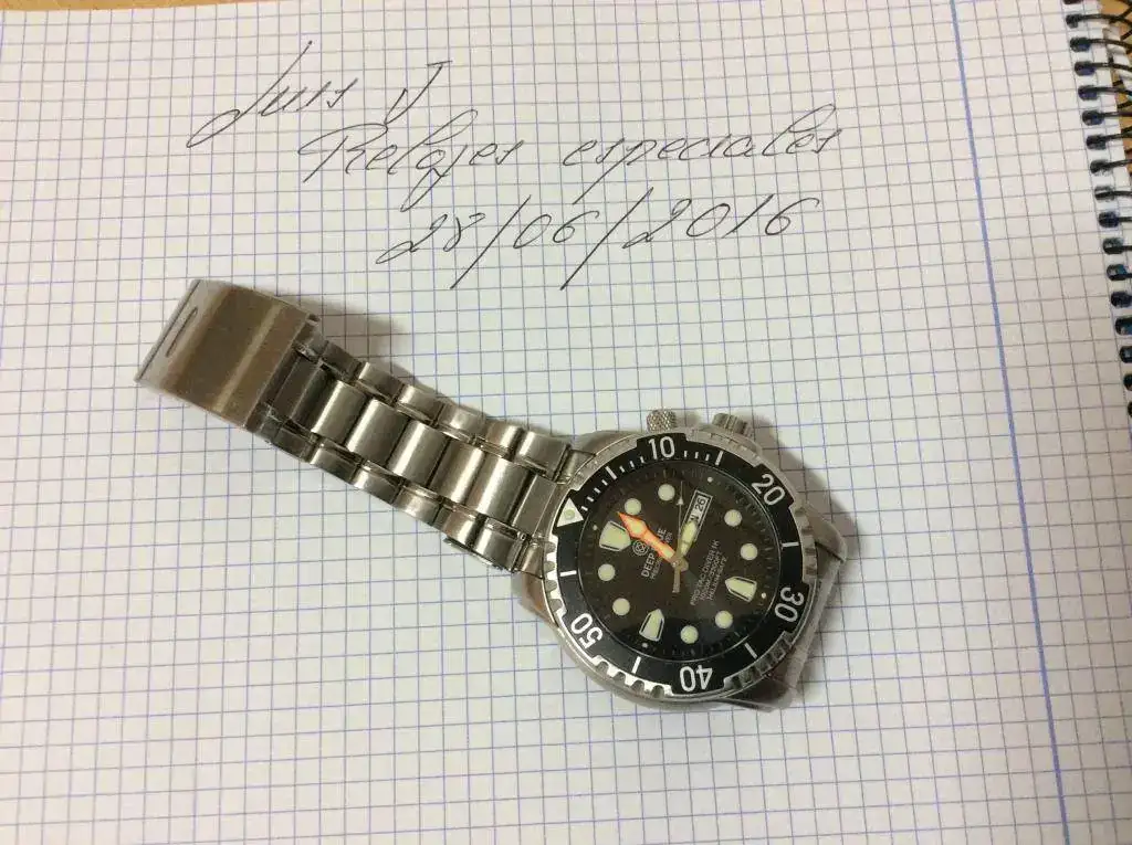 Sigo vaciando la caja. (Para hacer caja) y pongo a la venta este extraordinario diver con un movimiento de cuarzo. Destaco el lumen. Es una auténtica linterna. Pego ficha del fabricante aunque voy a rellenar la ficha general.