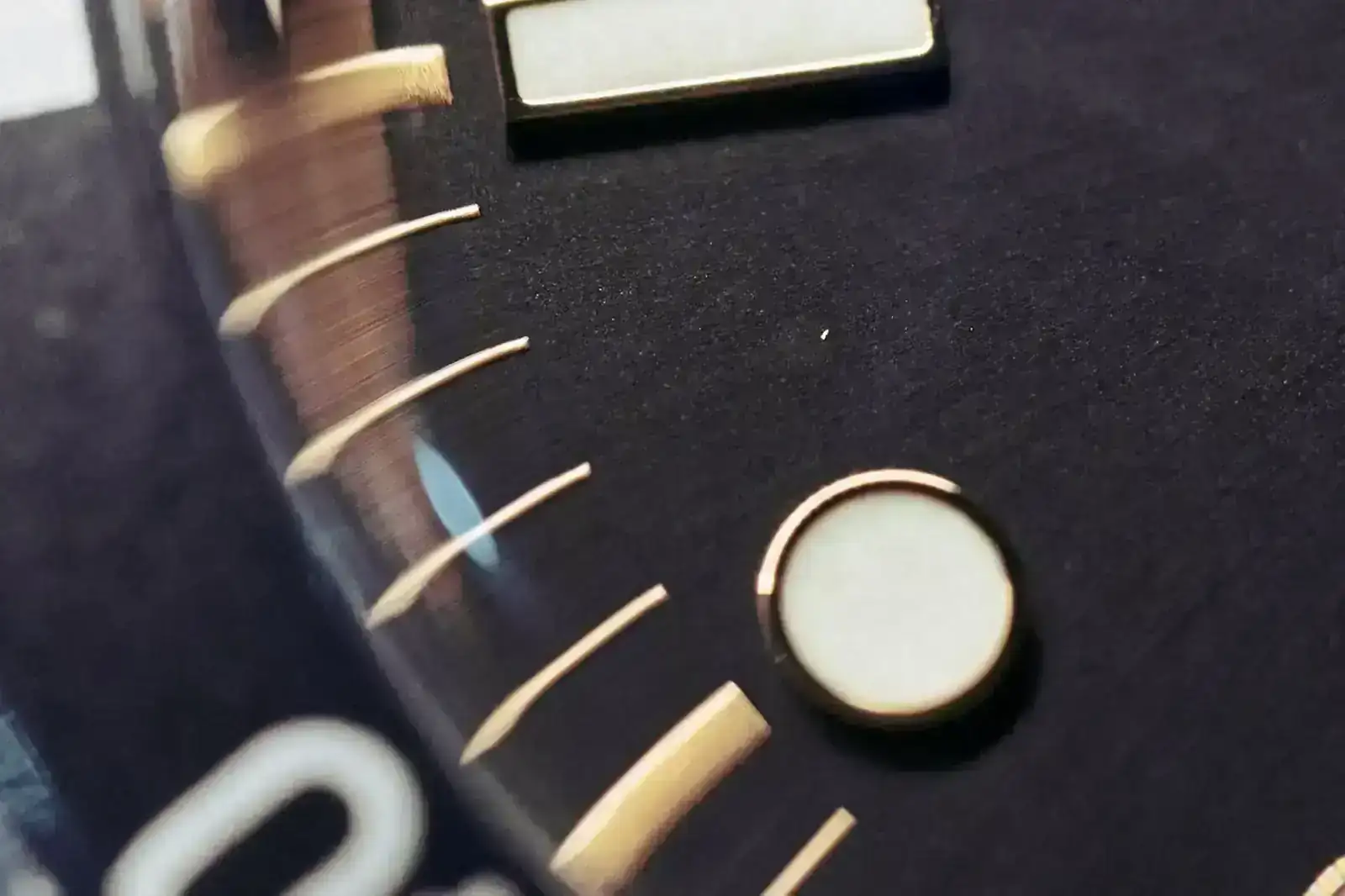 Mi sorpresa fue que nada más abrirlo, y sin aún quitarle ningún protector, mis ojos se fueron en modo automático a mirar una mota dorada que había en el dial. “¡No puede ser!”, pensé. “Será alguna mota de polvo superficial en el cristal”. Pues no, mis sospechas eran reales.