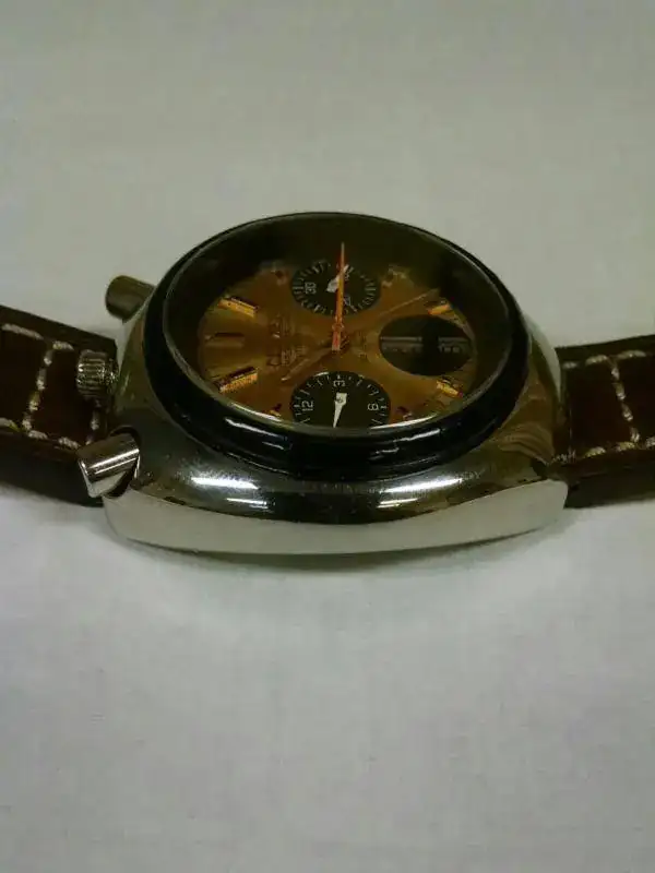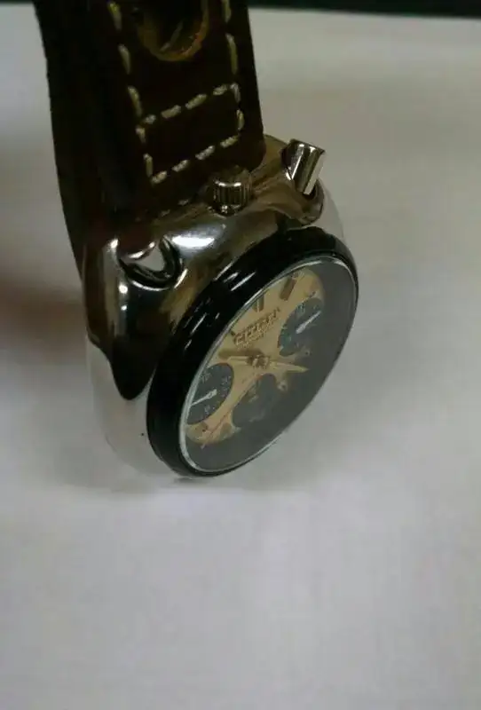 Hola compañeros, esta pieza ya la había mostrado, pero no se encontraba en las condiciones optimas en que ahora se encuentra. Primero y antes que otra cosa, quiero agradecer a mi amigo José, -en este foro Josrey- por haberme brindado su ayuda cuando por medio de fotos a la carrera y con urgencia por la premura de la compra le mostré el reloj y me dijo adelante con la compra. Posteriormente y por más fotos que le mande, me dijo que el cristal que montaba no era el original, pero ni siquiera en su forma, ya que llevaba un cristal de lupa, que hacia desmerecer mucho la pieza, que la tapa de fondo tampoco correspondía con la referencia real, pero que todo ello no implicaba mayor problema; así que días después José me escribe y me manda fotos diciéndome que ya tenía el cristal correcto y no solo eso, también un bisel negro que es como en origen vienen montados, ya que el que traía el reloj había sido pulido del color negro que revestía el bisel y tambien la tapa roscada del fondo del reloj, que le indicara como hacérme llegar todo eso. No obstante debo aclarar que el bisel negro que me consiguió, también mostraba señales de uso y se encontraba despintado en algunas partes, lo cual es lógico al ser piezas con muchos años encima, preguntandome que sí yo quería que lo pintaran, pues podía mandar a hacerlo, lo cual acepte y así se hizo.