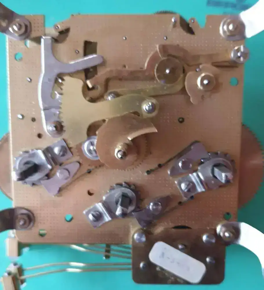 El reloj de pared es un Sars con un mecanismo Hermle 341-020 45cm. El reloj funcionaba con exactitud, con un largo recorrido del pendulo y la soneria sonando perfecta a sus cuartos y horas como debe ser. La cuestion, y no me digais como, llego a mis manos un mecanismo exactamente igual que el de mi reloj al que le faltaba la rueda de escape. Asi que antes de pedirla, decidi sacarla del mecanismo de mi reloj para ponerla en el mecanismo recien llegado y comprobar si con ella funcionaria, y funciono, lo que no funcionaba era la soneria.