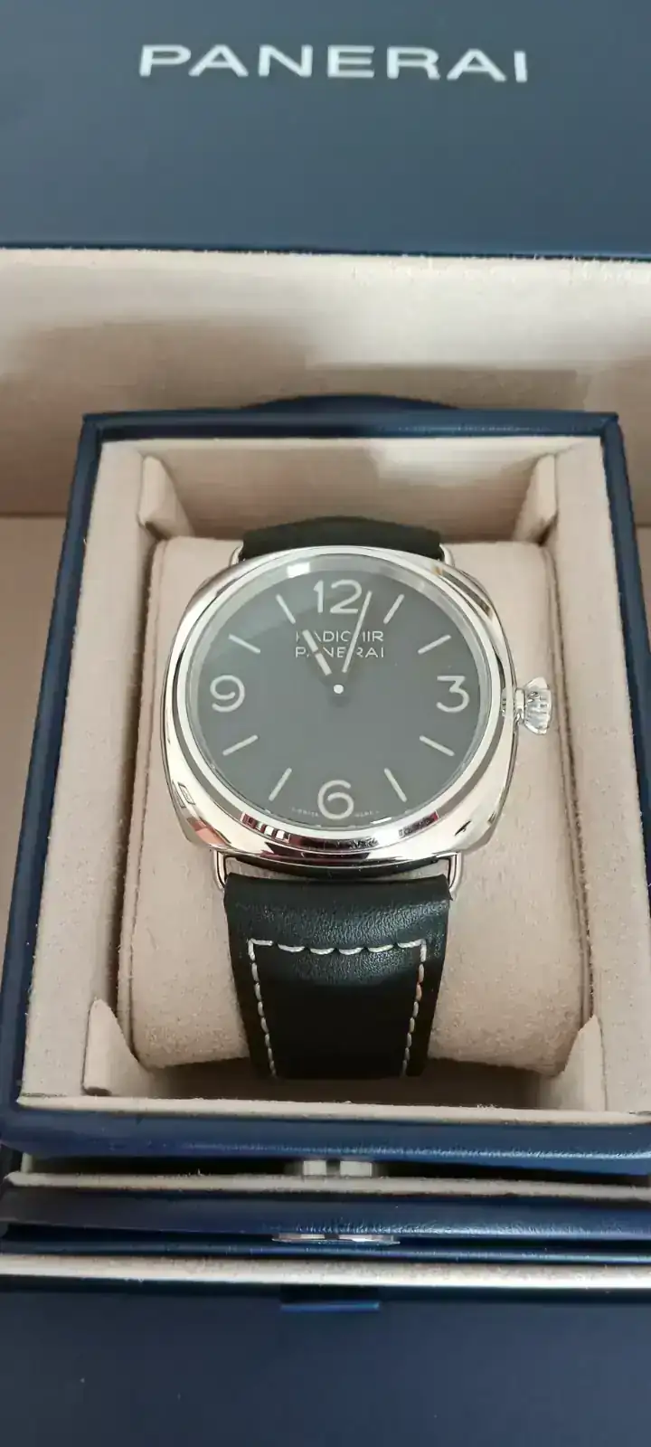 La caja está toda pulida. A este Radiomir le sienta de lujo (nunca mejor dicho) el pulido brillante. Al Luminor, en cambio, creo que le sienta mejor el cepillado.