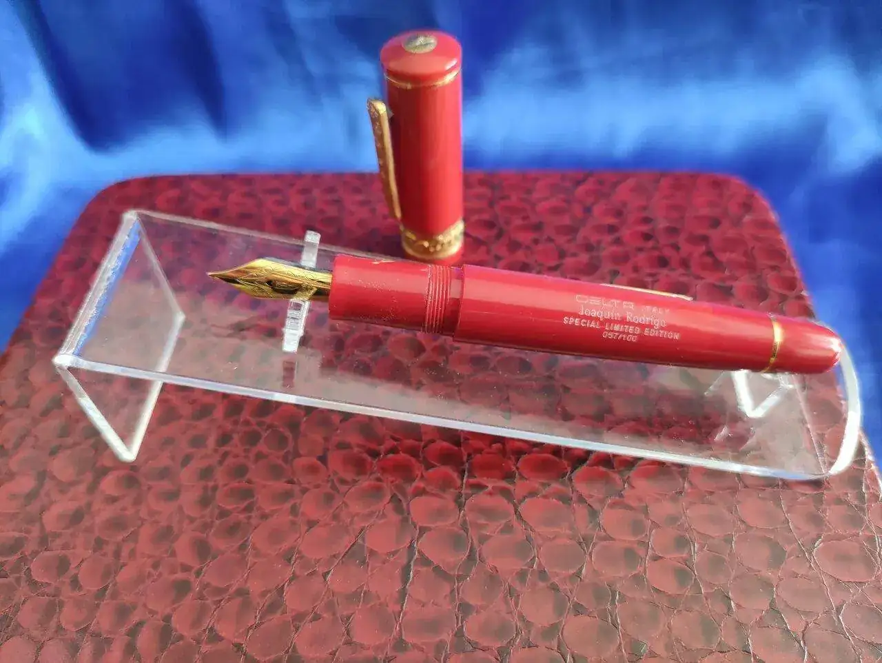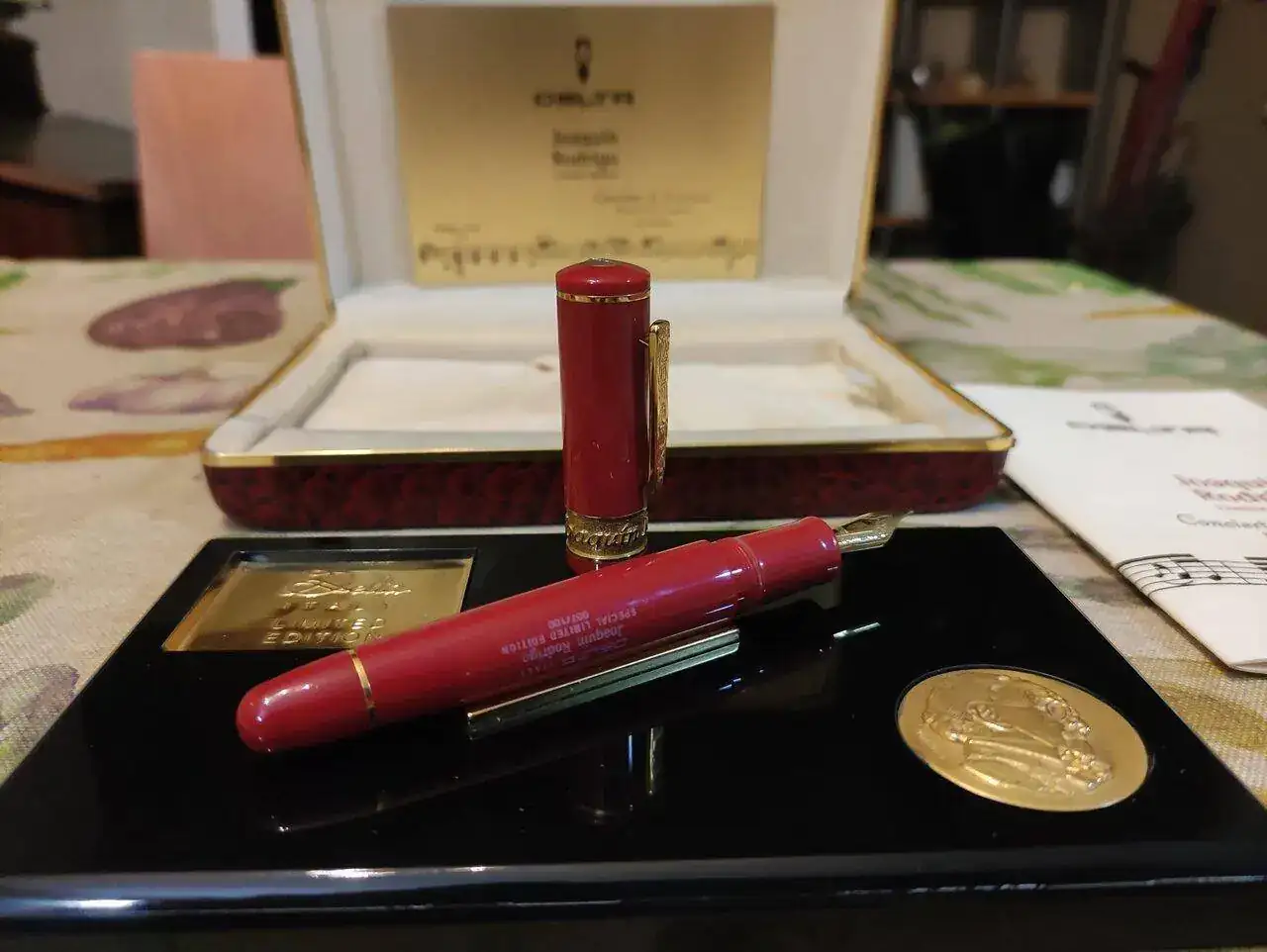 La colección Joaquín Rodrigo ha sido realizada en resina especial torneada a mano de barra llena de color burdeos. Cada estilográfica lleva el logotipo Delta y el número de serie y está enriquecida con franjas de plata maciza 925‰ vermeil, en las que está grabado a mano el nombre del compositor.