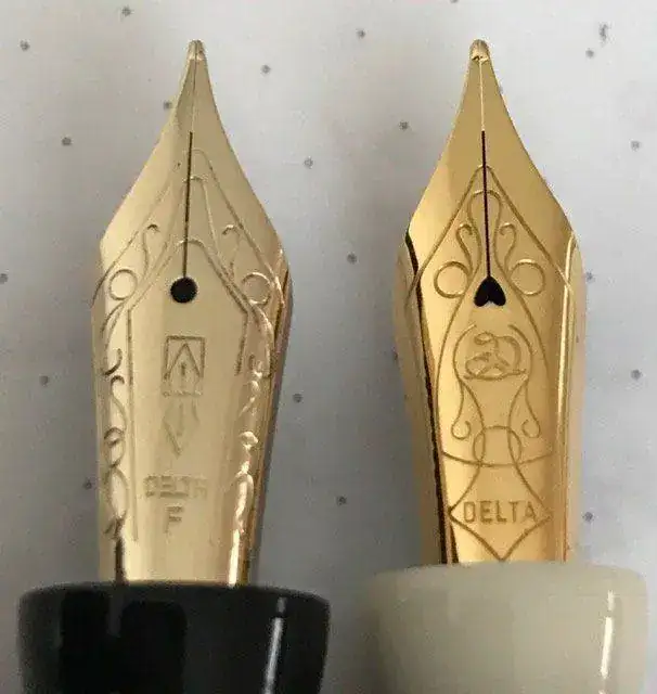 A la izquierda, el plumín de la Parthenope y a la derecha el de mi Delta Nautilus. He visto que otro modelo de la Parthenope, la de color negro entera, lleva el mismo plumín que la Nautilus, con el corazón. :yes: