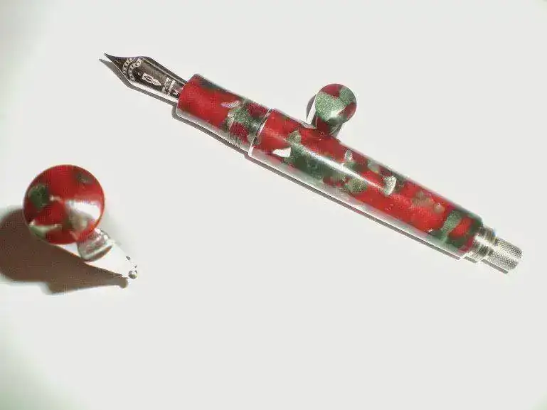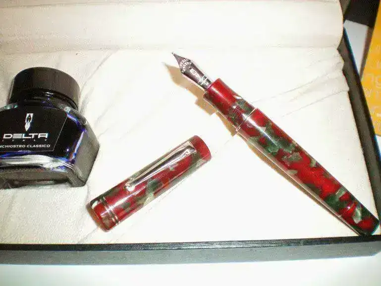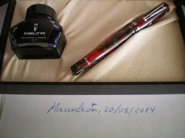 Con plumín "M" de acero, todas sus cajas (dos de cartón y la rígida) y un tintero sin estrenar, viene con la cuidada presentación propia de la marca italiana y tiene un curioso sistema de carga que parece pistón, pero es convertidor disfrazado...