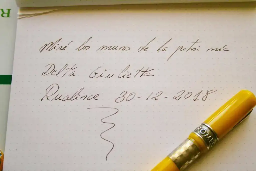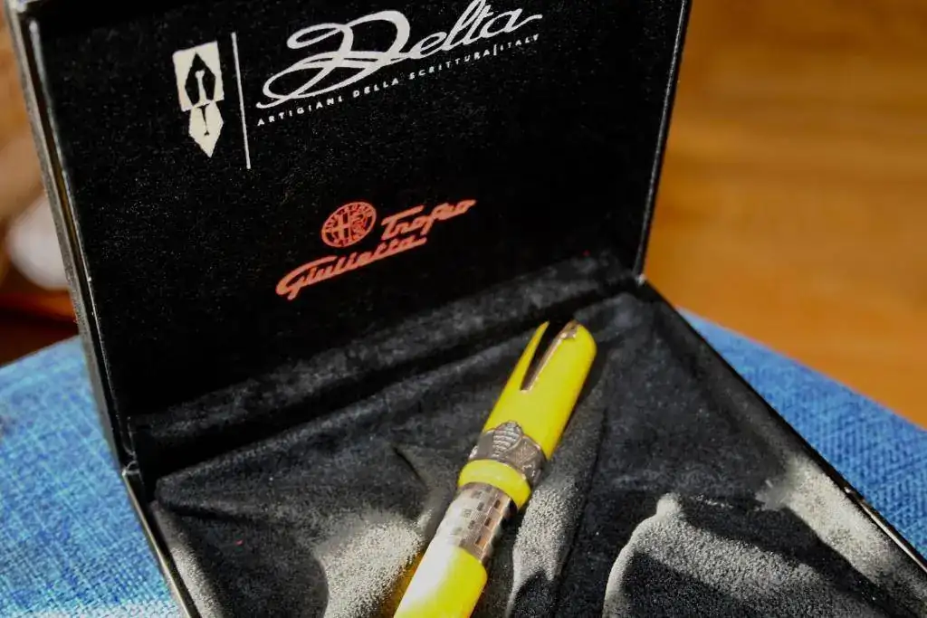 Fue realizada sobre una resina especial de un bello color amarillo, maciza y torneada a mano, con pulido a espejo. En el capuchón encontramos el escudo de Alfa Romeo; el clip, con un diseño basado en el coche está platinado y por último, el capuchón se embellece con una ancha franja de plata maciza donde se refleja la parrilla delantera del Giulietta y las palabras “ALFA ROMEO”.