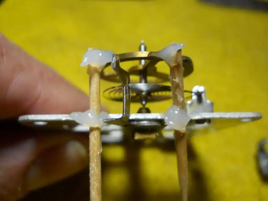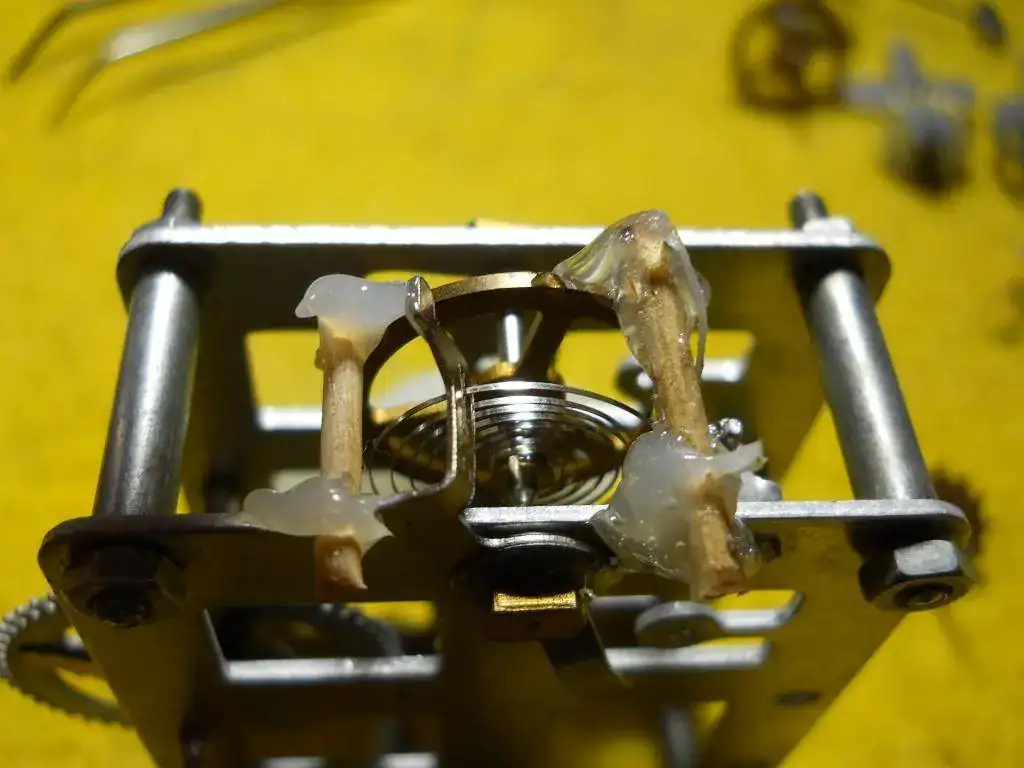 Digo que fue chanchada porque es probable que este pegamento deje residuos en el volante y que lo desequilibre, pero no me importa la precisión del reloj sino volverlo a armar y que todo trabaje bien.