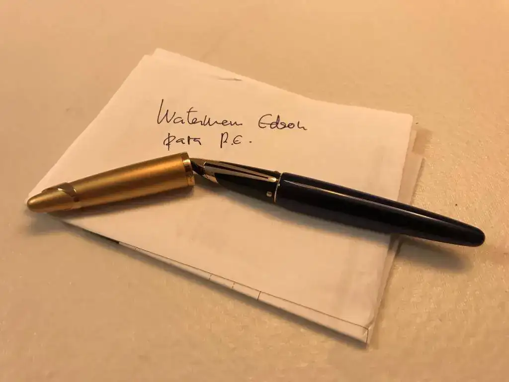 Como consecuencia, he tenido que hacerme con una antes de que empiecen a escasear, hacía tiempo la la rondaba y ha caído. He de decir que es algo impresionante, el capuchón, el cuerpo, el acabado...y como escribe!!!! Para alguien como yo, que soy de los que prefiere puntos firmes a flexibles, es impresionante. Diria que perfecta. Que bien va, no es un mito lo de la constancia de su flujo....