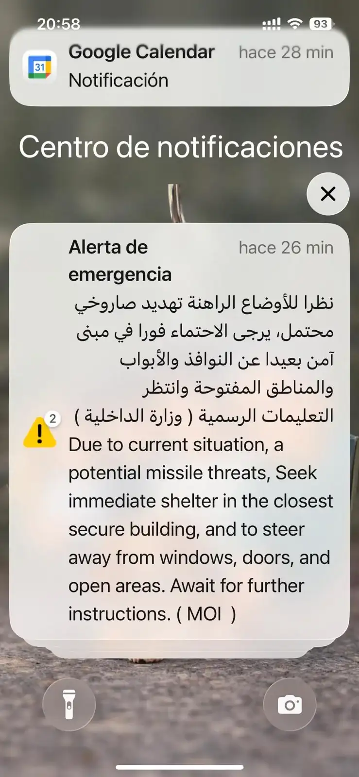 Eran las 20:35 de la noche del jueves 6 de marzo cuando saltó de nuevo la alarma por alerta de misiles, instando a las gente a que buscara refugio de inmediato. Mi mujer y yo estábamos a punto de sentarnos en un restaurante casi vacío a tomar la última cena antes de salir al aeropuerto con destino Barcelona. Yo no hacía más que mirar una y otra vez la página de la app de Emirates por si el vuelo aparecía cancelado, pero hasta ese momento todo parecía en orden de marcha. Pero aquella alarma podría cambiarlo todo.