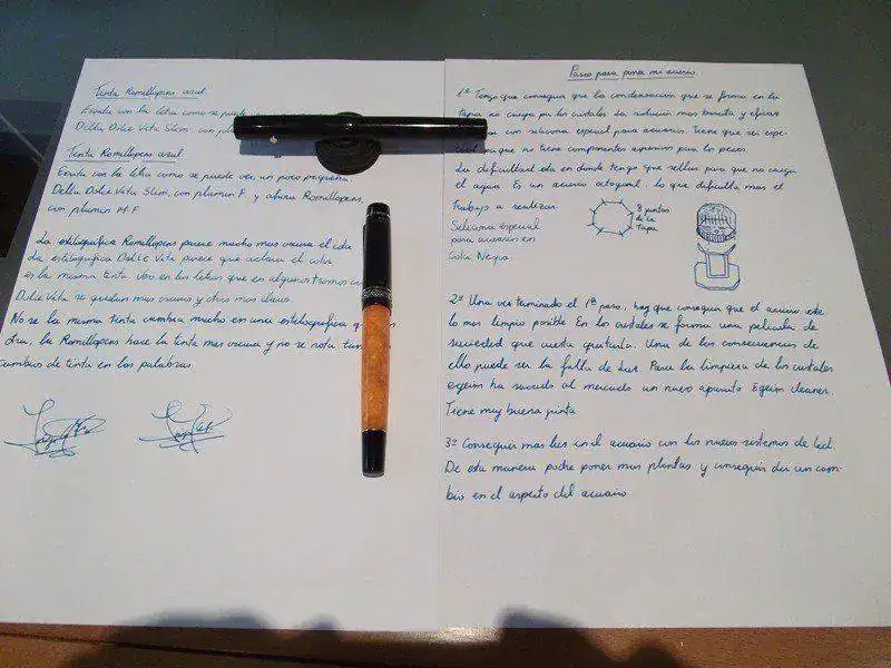 , desde que tengo la Romillo solo la uso a ella, la Delta y mi antigua Aqua Pen USA no me gustan, vamos que las he dejado en el cajón, alguna vez las cojo y según escribo la primera línea, las cierro, ya no me gustan, me siento como incomodo con ellas, sin embargo escribo con la Romillo, y otra vez feliz, me estoy volviendo loco