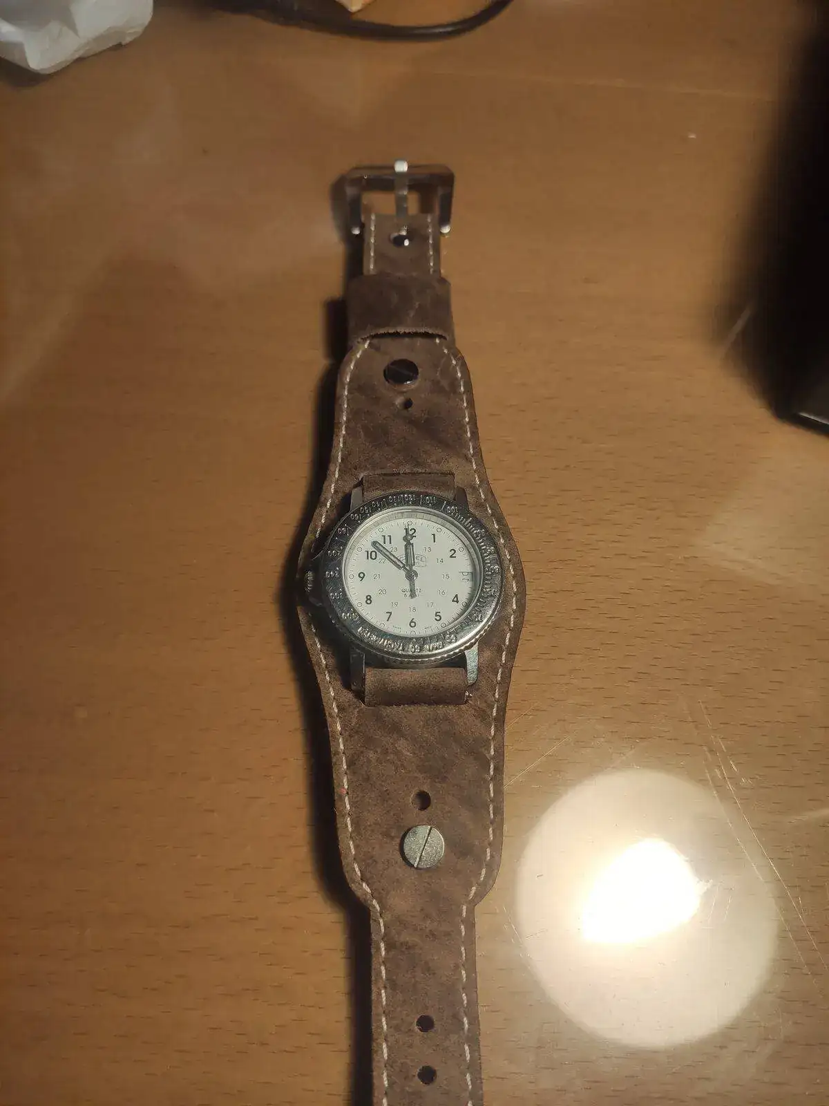 A este conforme llegó le cambié la correa nato negra que llevaba y le puse está de cuero que en mi opinión le queda genial.