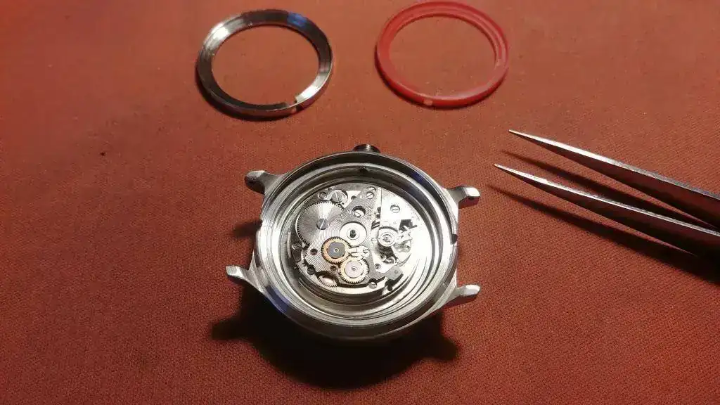 He tenido que quitar la junta negra para poder liberar la bata, que ya con los tornillos fuera, ha sido muy fácil de quitar. Una vez puesta la nueva bata y la junta, lo más difícil ha sido volver a poner la corona de nuevo, lo he intentado como una docena de veces hasta que al final, ha quedado pillada de nuevo. He tenido que ir metiéndola mientras apretaba el pulsador a la vez e iba roscando la corona....a sido bastante laborioso y con mucha tranquilidad y paciencia...pero al final, ha entrado!!!