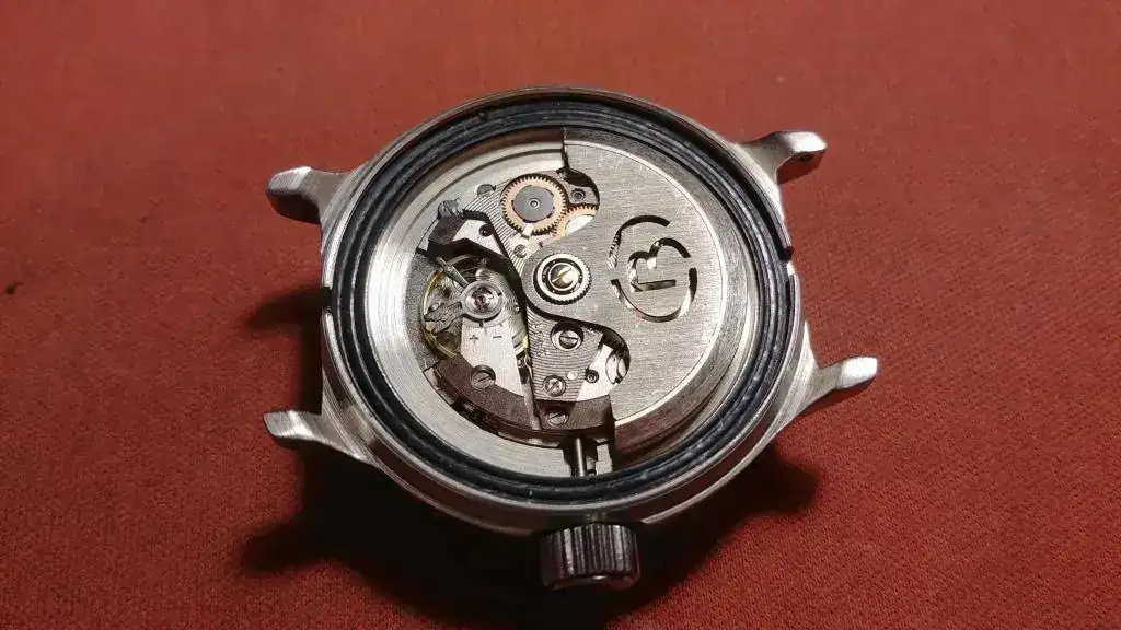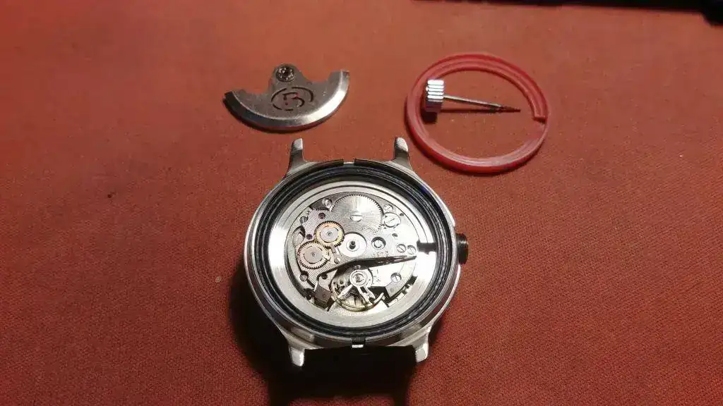 No tenía una lima lo suficiente fina para la ranura de algunos tornillos del reloj así que, he cojido un pequeño destornillador y lo he limado con paciencia con un pequeño limatón hasta dejarlo perfecto para dicha ranura. Total, que he logrado quitarle la corona, bastante fácil, dejándola en la posición del cambio de agujas y, presionando un pequeño pulsador. Después quitando el contrapeso del automático aflojando simplemente su tornillo central y finalmente, quitando los dos tornillos que sujetan la bata.