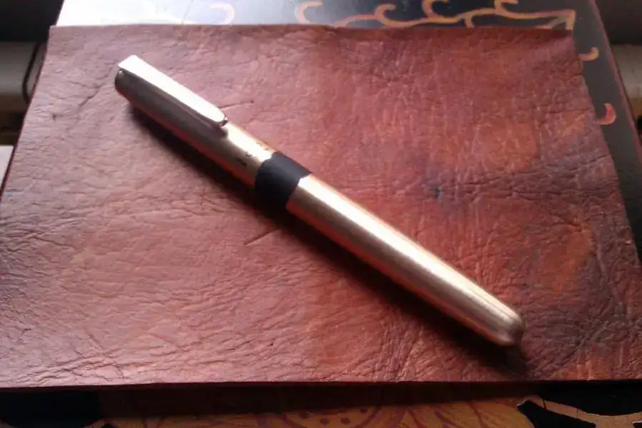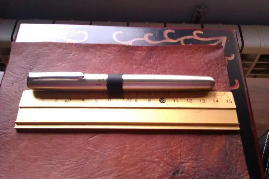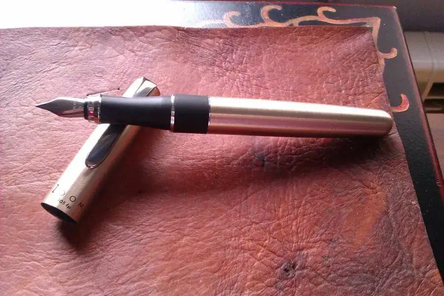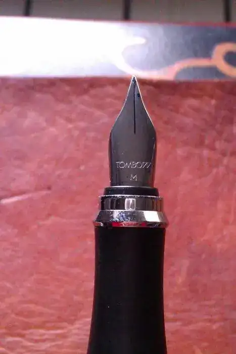 Seguimos adelante; le toca el turno a una Tombow 505 fp2, del imperio del sol naciente. Metálica anodizada, a excepción de una banda de 1cm en el cuerpo que es de goma; carga por cartucho standad o convertidor; plumín de acero con excelente tacto tamaño M y flujo muy suave. A pesar de ser metálica es muy ligera. Esta es una de las que siempre tengo en uso.
