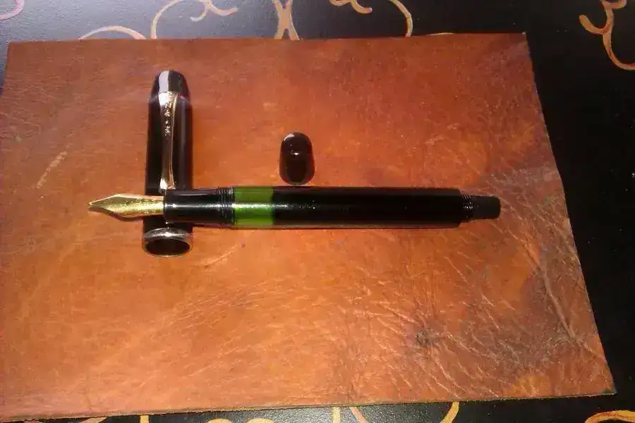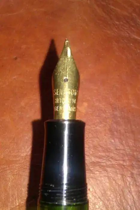Siguiendo con la serie le toca el turno a mi Senator, de origen alemán y procedencia por herencia de mi abuelo. Pluma sencilla, con ventana en color verde, punto iridiado, en el que se aprecia que el gavilán derecho esta un poco doblado hacia arriba, pero prefiero no tocarla ya que no la uso aunque supongo que el arreglo es sencillo. Carga por pistón desenroscando la parte trasera. Capuchón y cuerpo van a rosca.