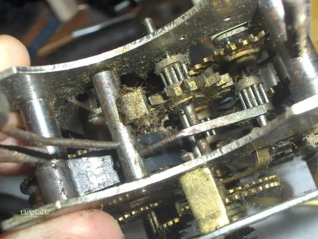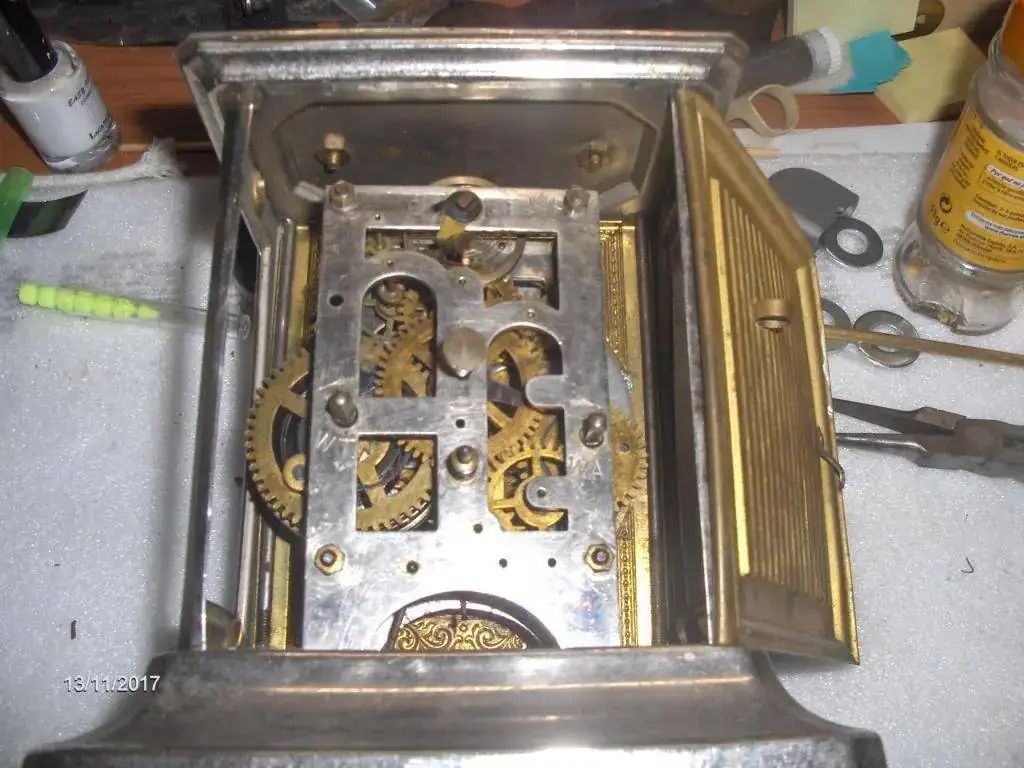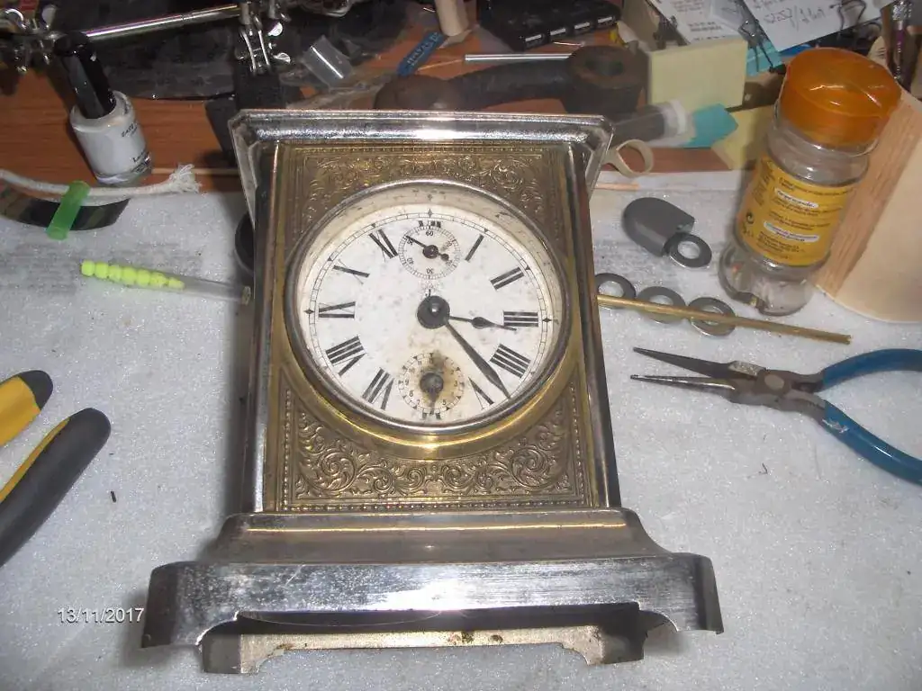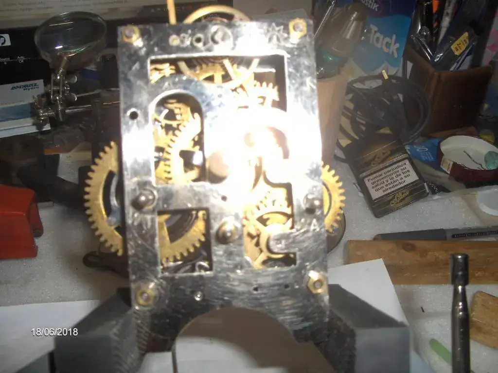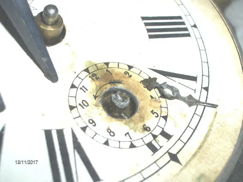 Aqui tenemos la primera reparación , hay que hacerle un casquillo de bronce para insertar la aguja del despertador, la habian reparado previamente con estaño. Unos miniutos de trabajo con el torno , espero que no de mas problemas.