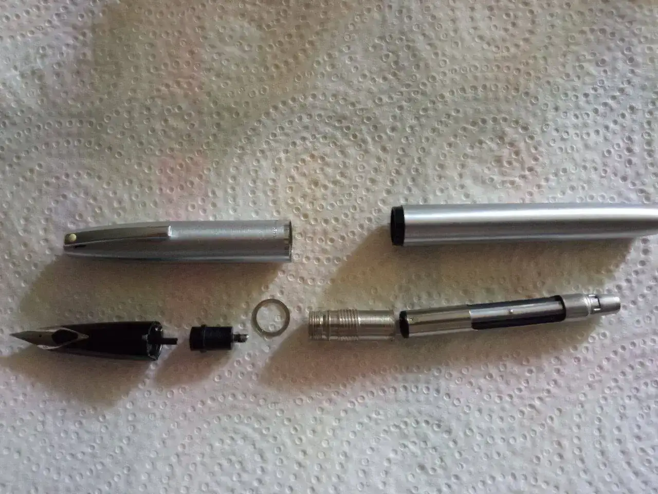 Con el objeto de conocerlas, no solo por fuera, sino también por dentro, Propongo que pongamos fotos de las plumas que despiecemos, bien para limpiarlas o para repararlas. Esto nos puede facilitar las cosas viendo la pluma desmontada.