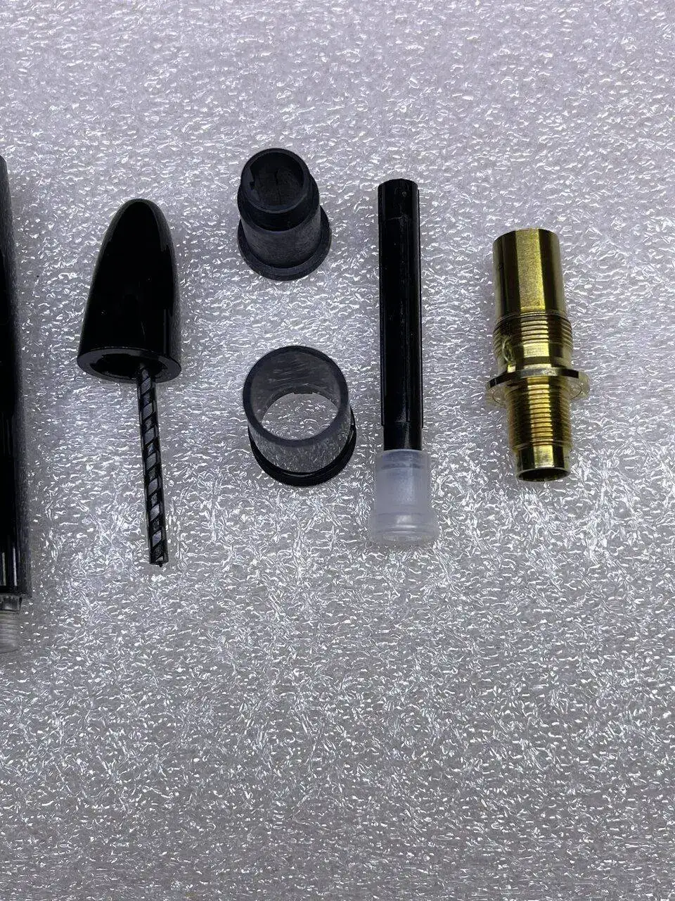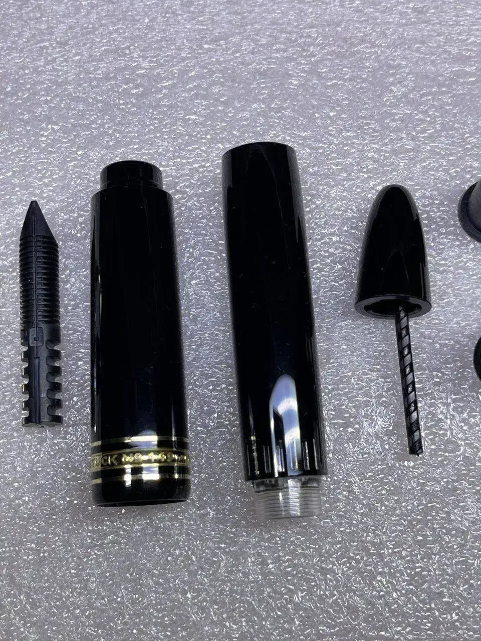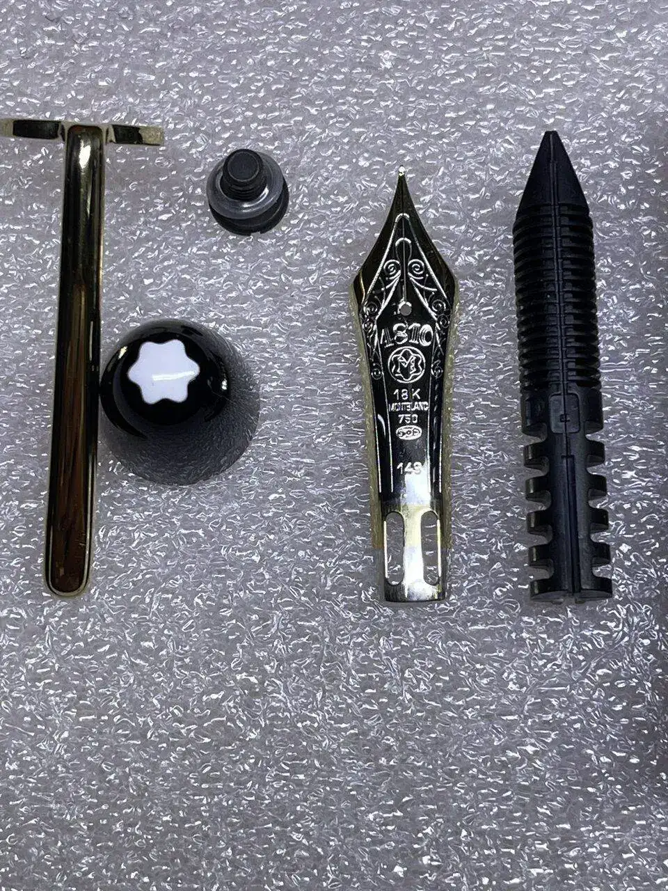 La tercera pieza empezando por la izquierda, va unida al cuerpo de la pluma, a rosca.