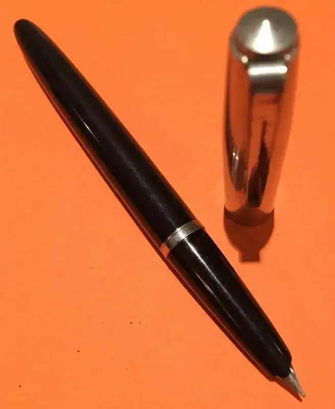 Perdona y con total humildad, pero me parece que esta es una 55 incipiente, pues en el plumín lo pone, aunque el pie del capuchón no lo indique, porque seguramente esta pieza si que es un resto final de las 41.