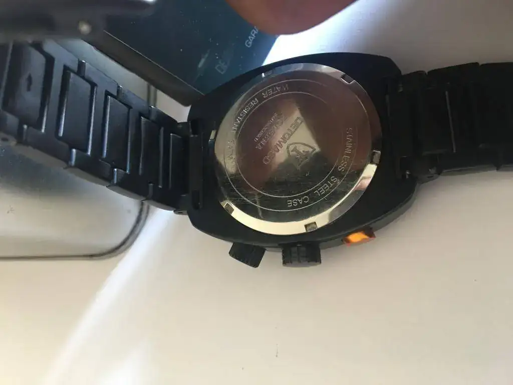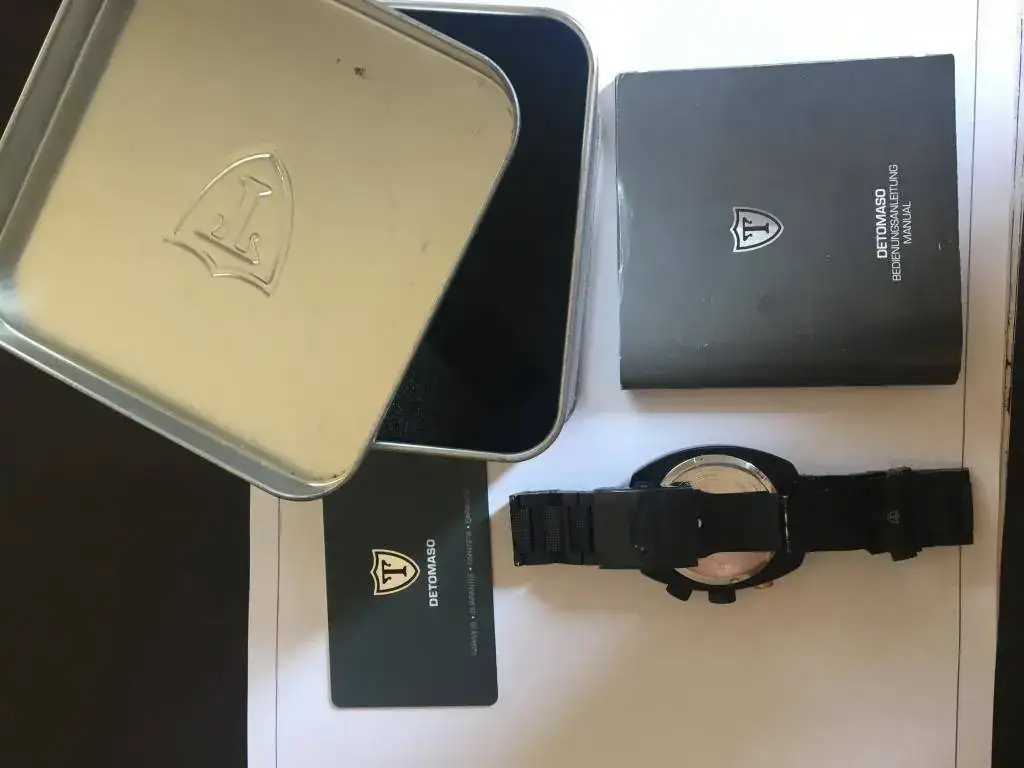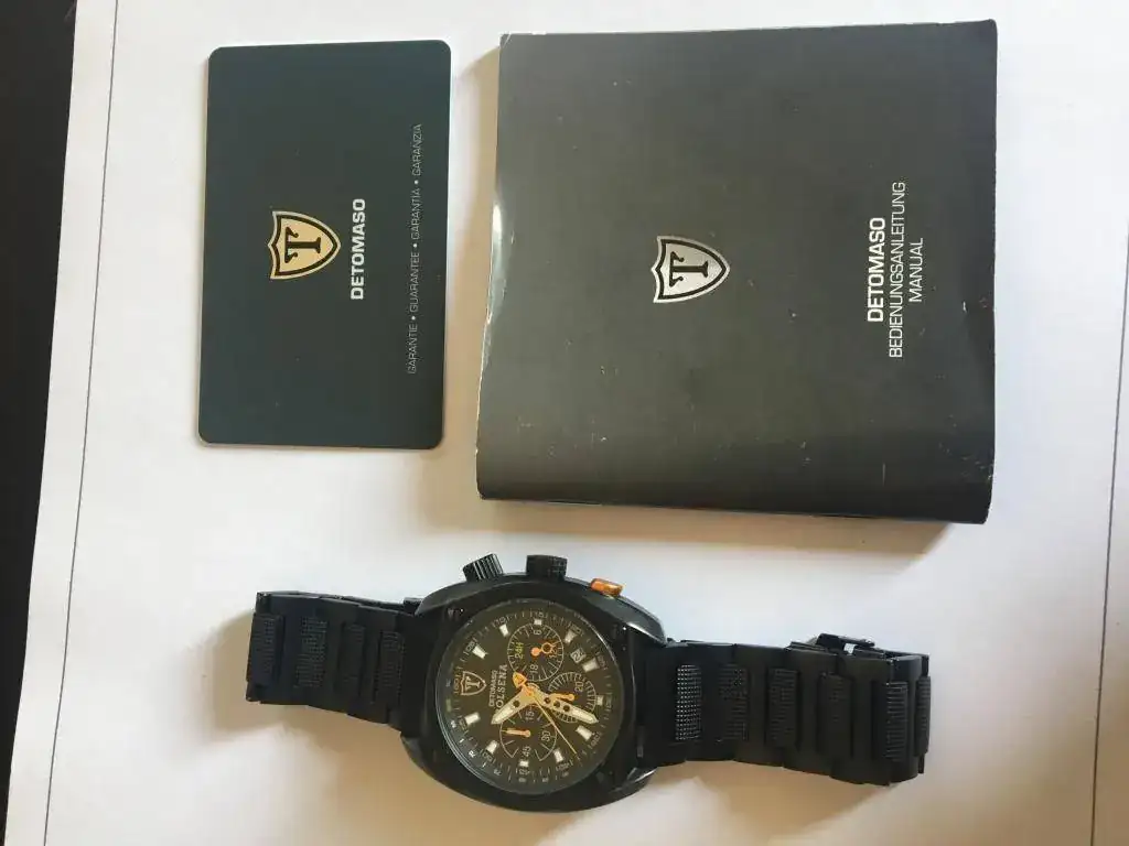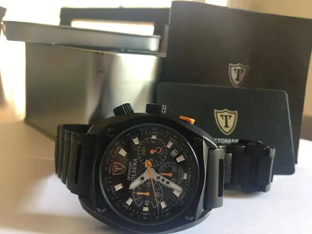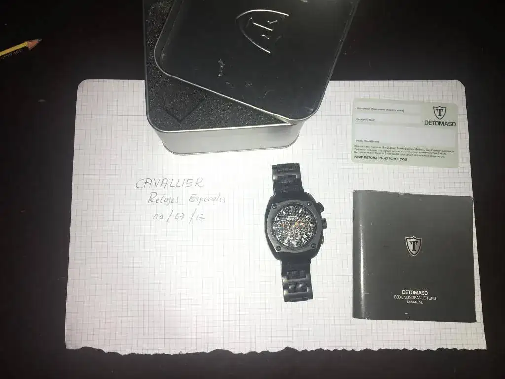 Saco a la venta reloj Detomaso Bolsena con movimiento Seiko Cronógrafo VD53 caja de acero ionizado negro, cristal mineral, ventana de fecha, doble uso horario 24 horas, dial de carbono, 42mm de diámetro por 11mm de alto, reloj impresionante, descatalogado, incluye caja, manual de instrucciones y garantía caducada, excelente oportunidad de hacerse con un reloj único, precio 70€, lo vendo por reestructuración de caja.