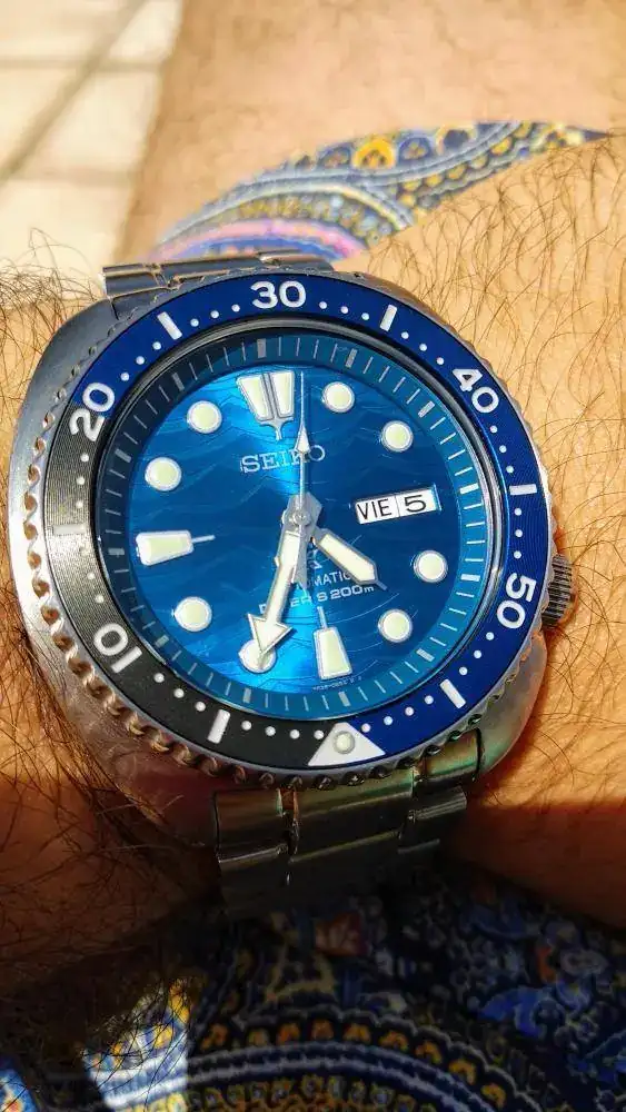 Ese mako se nota que le das zapatilla, me encantan los relojes así, vividos, con señales de guerra, nunca compraría un reloj para tenerlo en una caja fuerte y menos para especular.